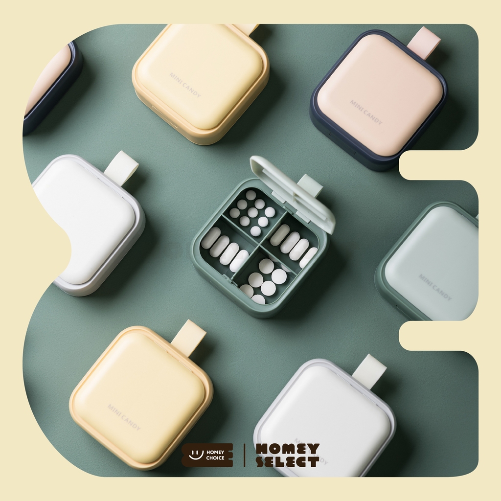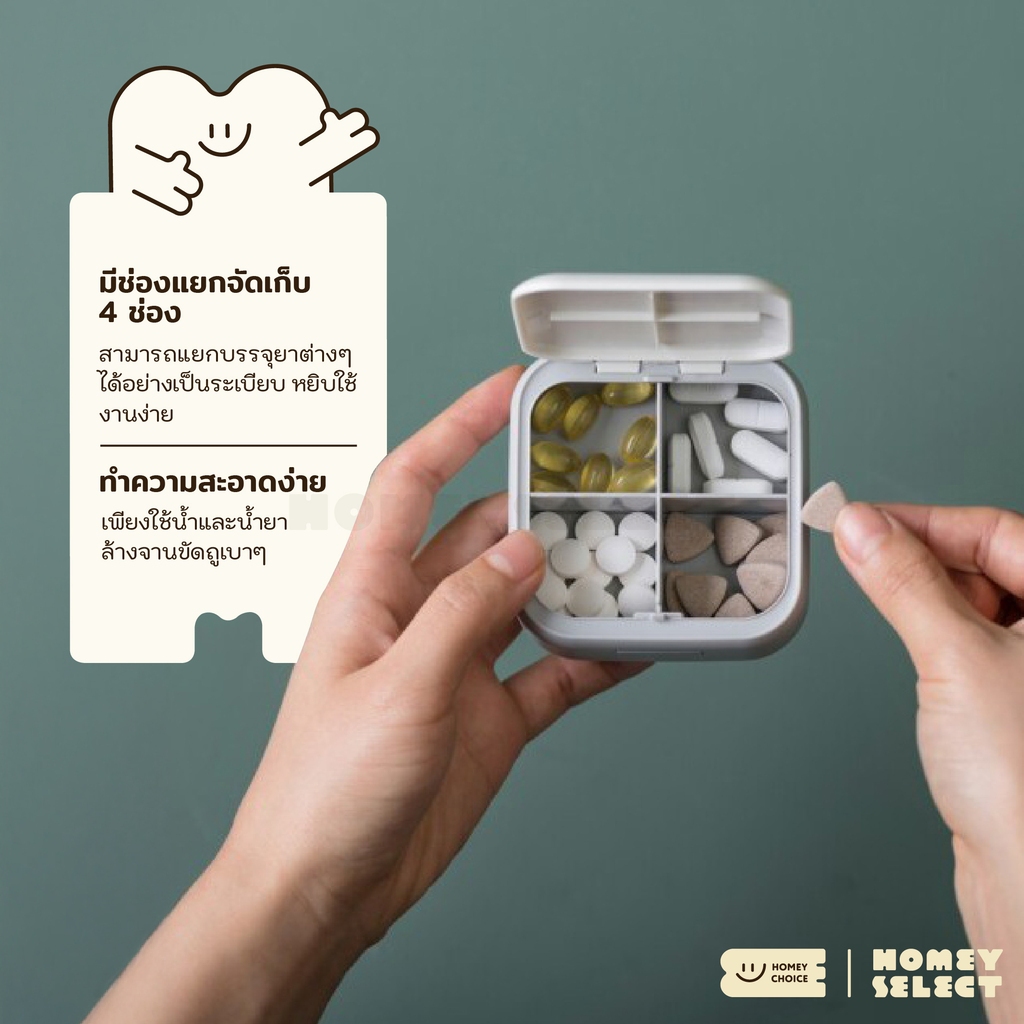 HomeyChoice ตลับใส่ยา กล่องใส่ยาแบบพกพา ขนาด 4 ช่อง ฝาปิดแน่น กันชื้น รุ่น 8060