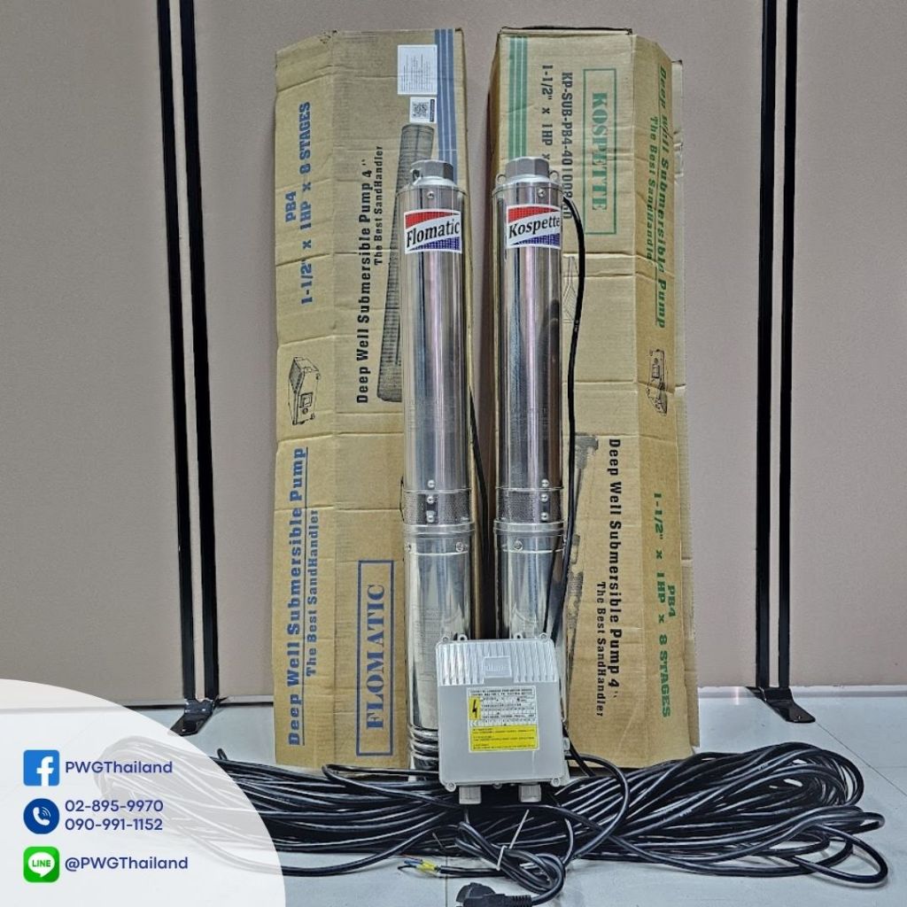 ปั๊มบาดาล AC บ่อ3 บ่อ4 พร้อมมอเตอร์ และ สายไฟ KOSPETTE FLOMATIC ปั๊ม ซับเมอร์ส ปั๊มไฟบ้าน