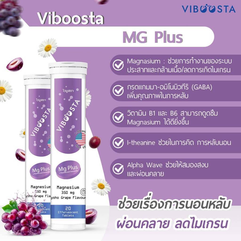Magnesium Plus L-Theanine B แมกนีเซี่ยม แอล-ธีอะนีน บี ลด ปวดไมเกรน นอนไม่หลับ แพนิค MG 20 เม็ดฟู่