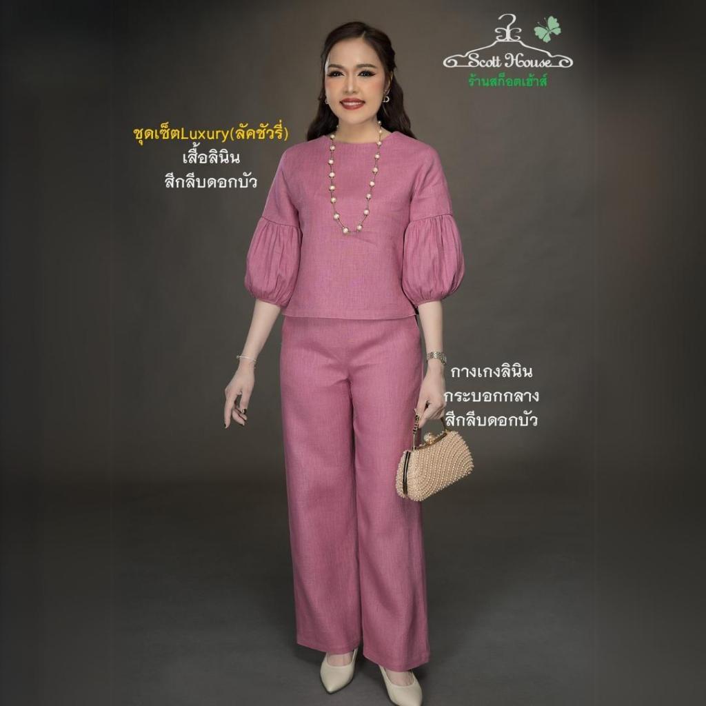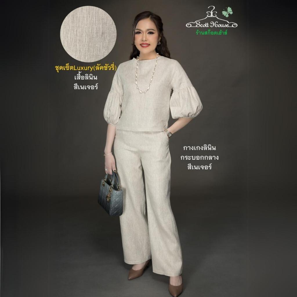 ชุดเซ็ตลินินแท้100% รุ่น ชุดเซ็ตLuxury(ลัคชัวรี่) สีพื้น