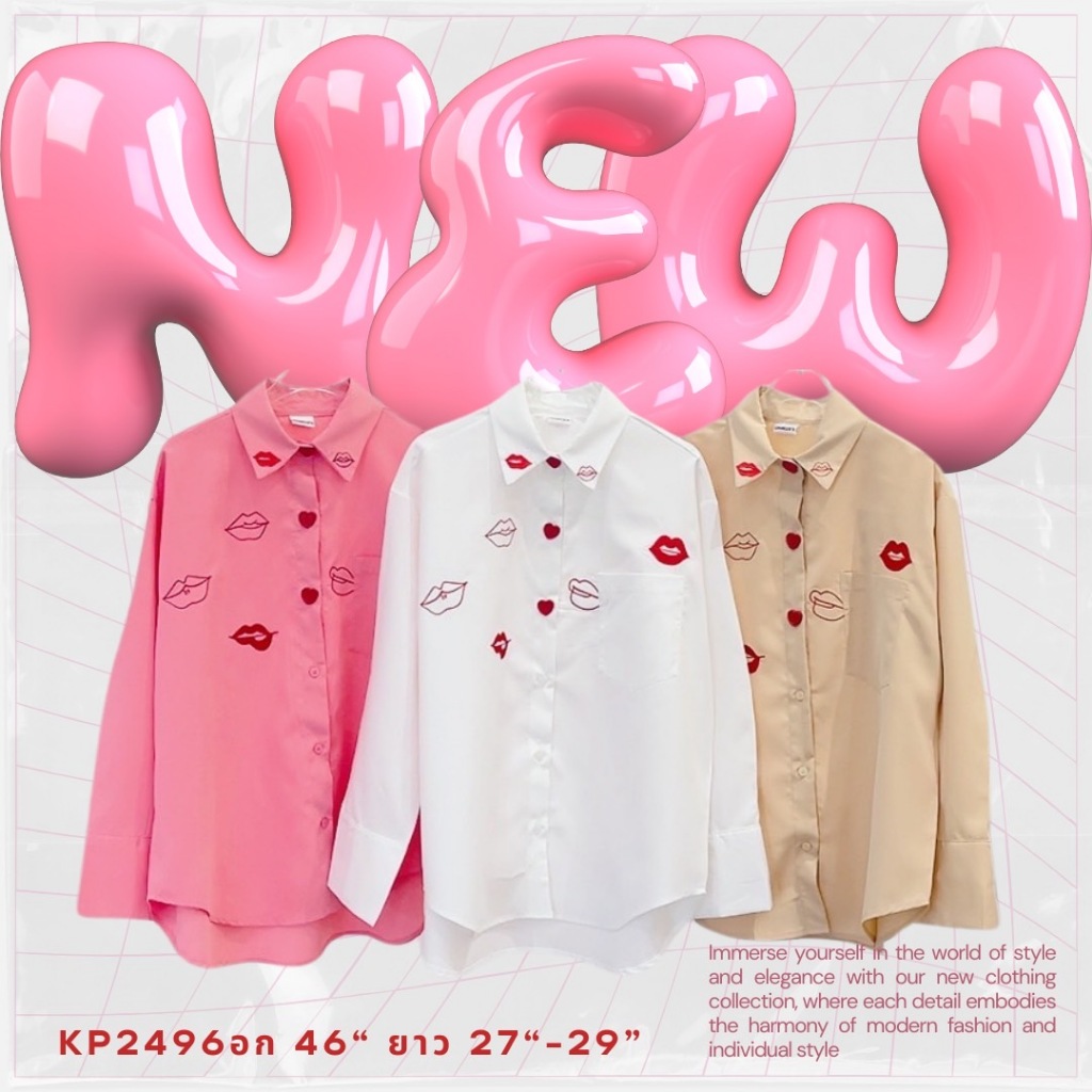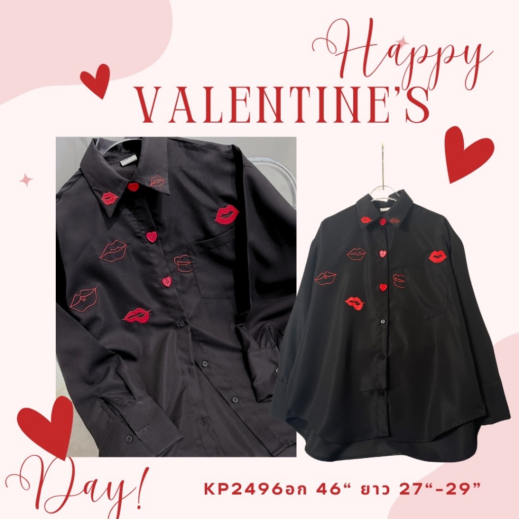 อก46" 👄Lovely Lips👄 “👕 เสื้อเชิ้ตยาวตัวนี้ไม่ได้มีดีแค่ความเก๋ แต่ดีเทลคือที่สุด! ✨ ปักลายปาก 👄-2496