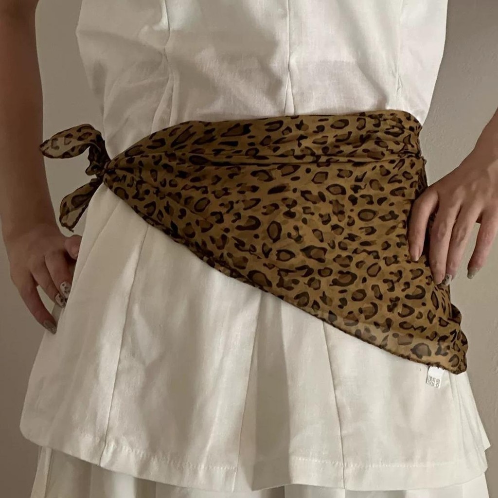 Halo studio พร้อมส่ง🔥 Y2k INS ลูกไม้สามเหลี่ยม Headscarf ผ้าพันคอแฟชั่นวินเทจลายเสือดาว สไตล์หวานและเท่