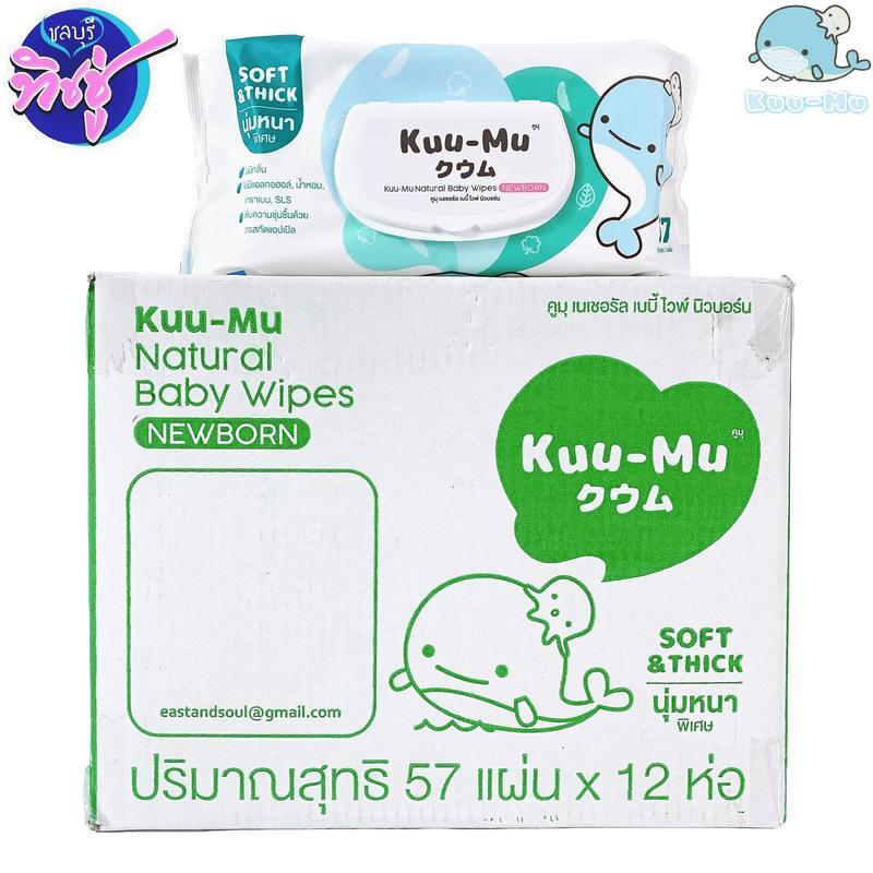 [ยกลัง] Kuu-Mu คูมุ ทิชชู่เปียกเด็กแรกเกิด ต้าววาฬ ยกลัง 12 ห่อ ห่อละ 57 แผ่น สูตรอ่อนโยนเป็นพิเศษ
