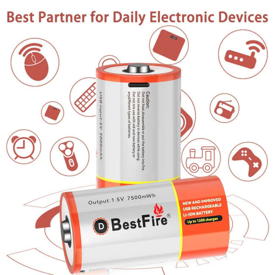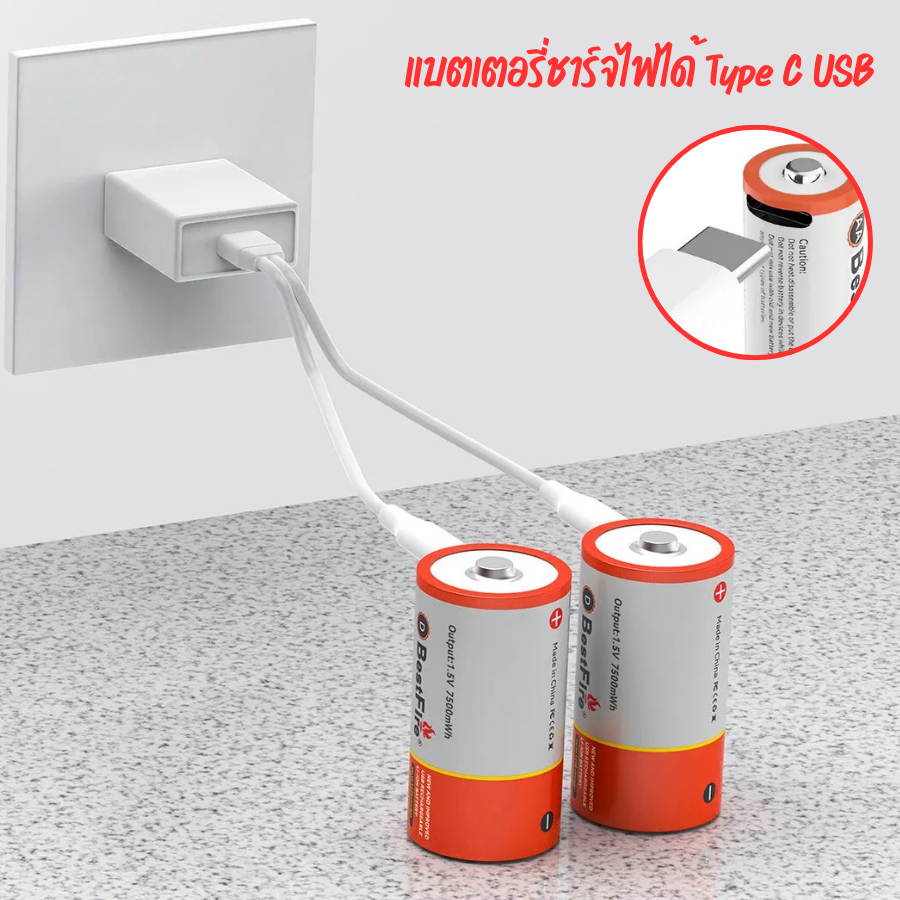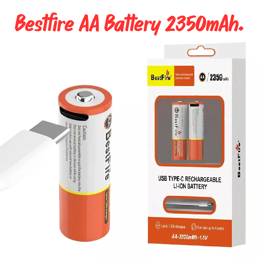 แพ็ค2ชิ้น Bestfire แบตเตอรี่ แบบชาร์จไฟได้ ถ่านชาร์จ Li-ion Battery 1.5V USB Type-C แบตเตอรี่ลิเธียม