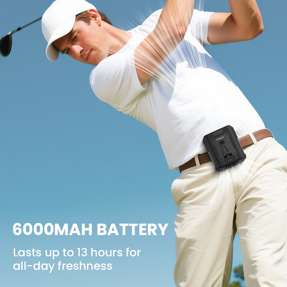 Orashare WF06 พัดลมคาดเอวแบบพกพา6000mAhไฟเคลื่อนที่และไฟ LED ฉุกเฉินพัดลมพกพาแขวนคอและเอว5ระดับ