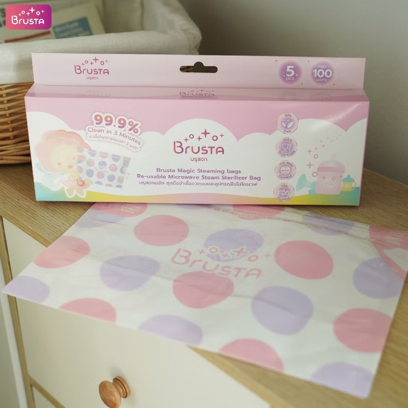 Brusta ถุงนึ่งฆ่าเชื้อโรคขวดนม, จุกนม, อุปกรณ์ปั๊มนม หรือของใช้ที่เกี่ยวข้องต่าง ๆ