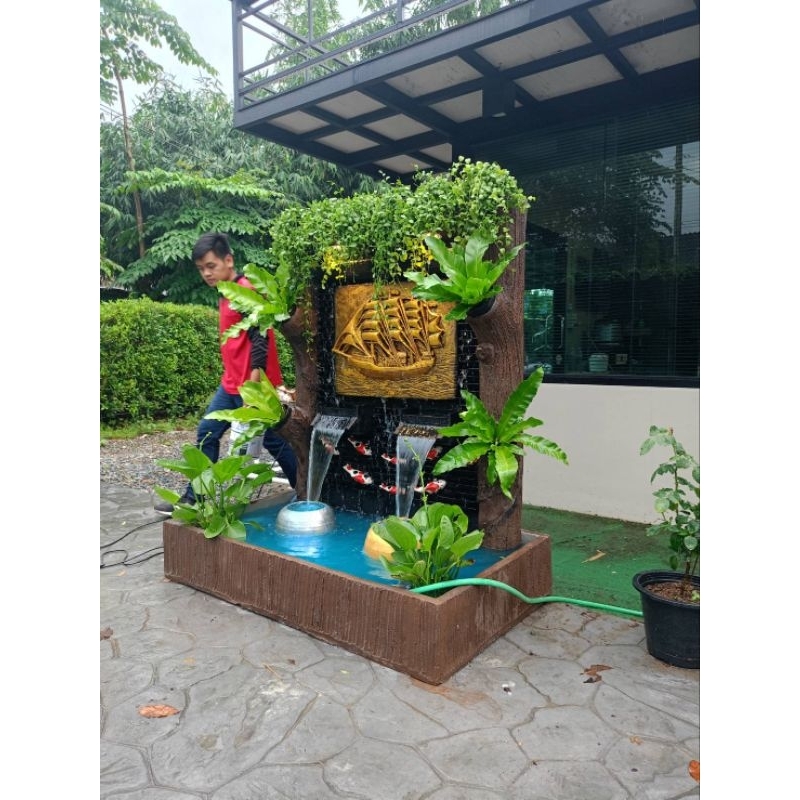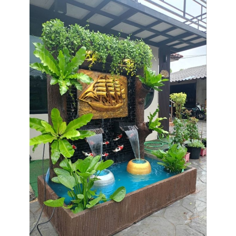 น้ำตกเรือสำเภาขนเงินขนทอง น้ำตกหน้าบ้าน ตกแต่งสวน ตั้งหน้าบ้าน เสียงน้ำไหล ตกแต่งต้นไม้ฟรี