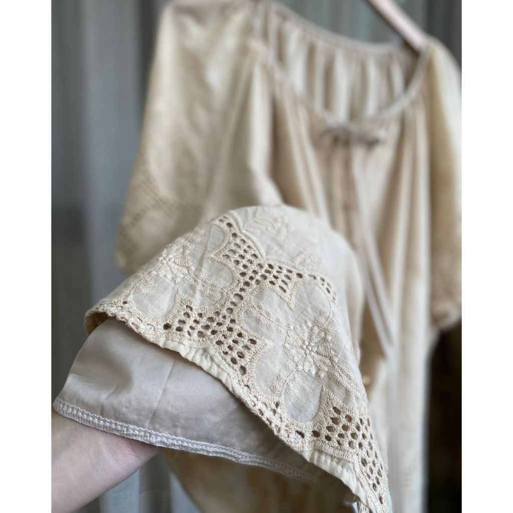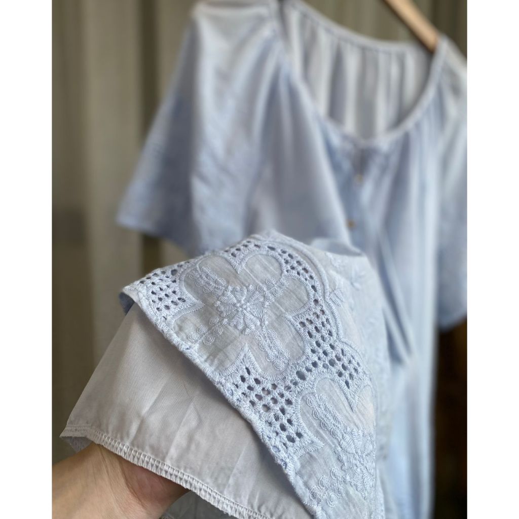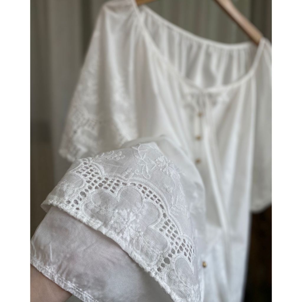 พิเศษ 370.-❤️🔥เสื้อผ้าป่านปักฉลุ สไตล์เกาหลี ผสม สไตล์ญี่ปุ่น minimal อกหน้าผ้า 52" วงแขนกว้าง ใสสบาย ทรงสวย กระดุมเปิด
