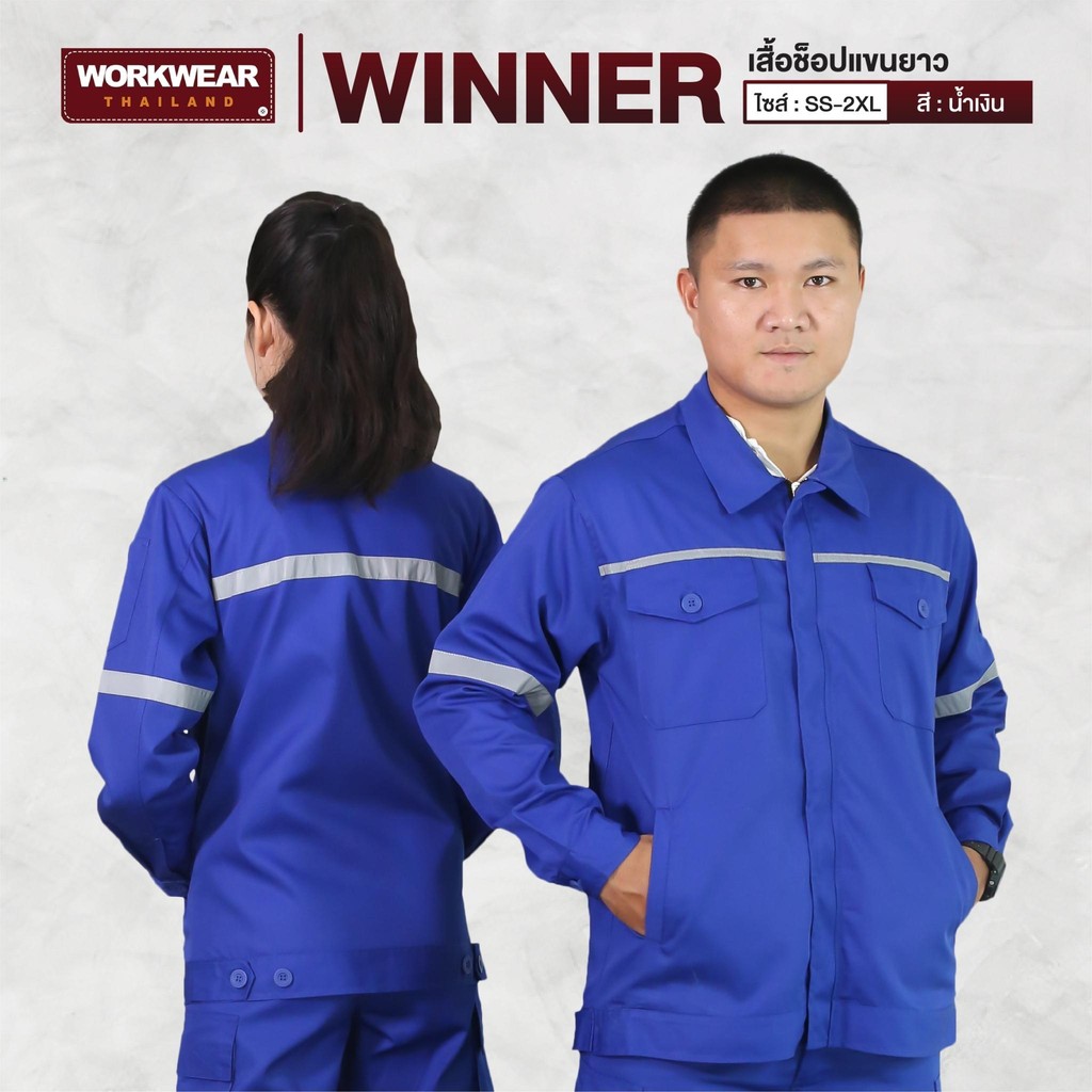 HERO SAFETY :เสื้อช็อปแขนยาว รุ่น Winner ซิปหน้าซ่อนทองเหลือง ติดแถบสะท้อนแสง ช็อปช่าง WORKWEARTHAILAND