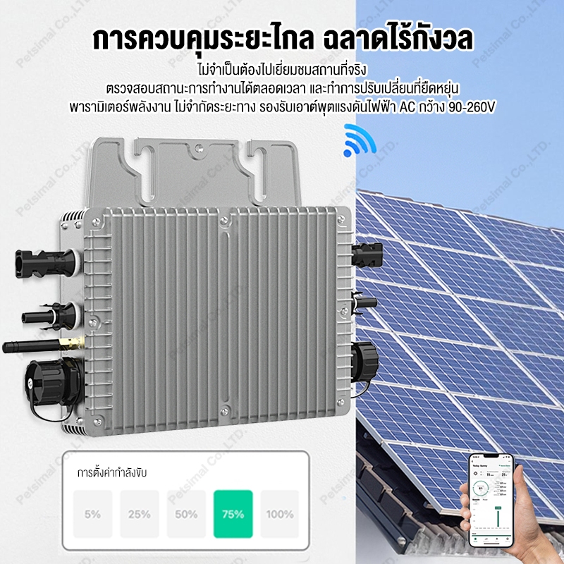 อินเวอร์เตอร์ ออนกริด 2000W Grid Tie Micro Inverter 800W พร้อมการสื่อสารแบบWIFIกันน้ำMPPTวางซ้อนกันได้ พลังงานแสงอาทิตย์