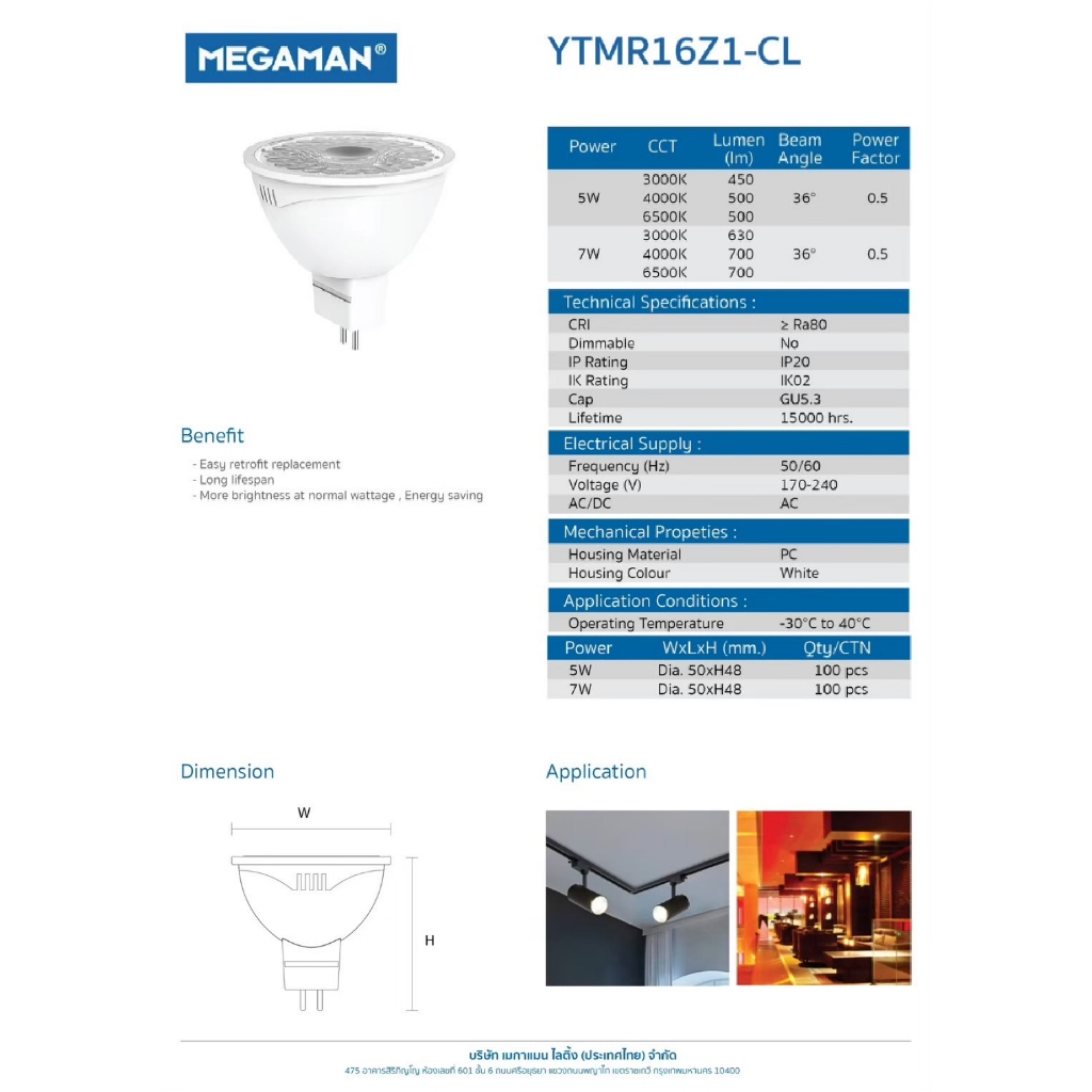 Megaman หลอด LED MR16 5w 7w ขั้วGU5.3 220V แสงเดย์ แสงคูล แสงวอร์ม หลอดฮาโลเจน