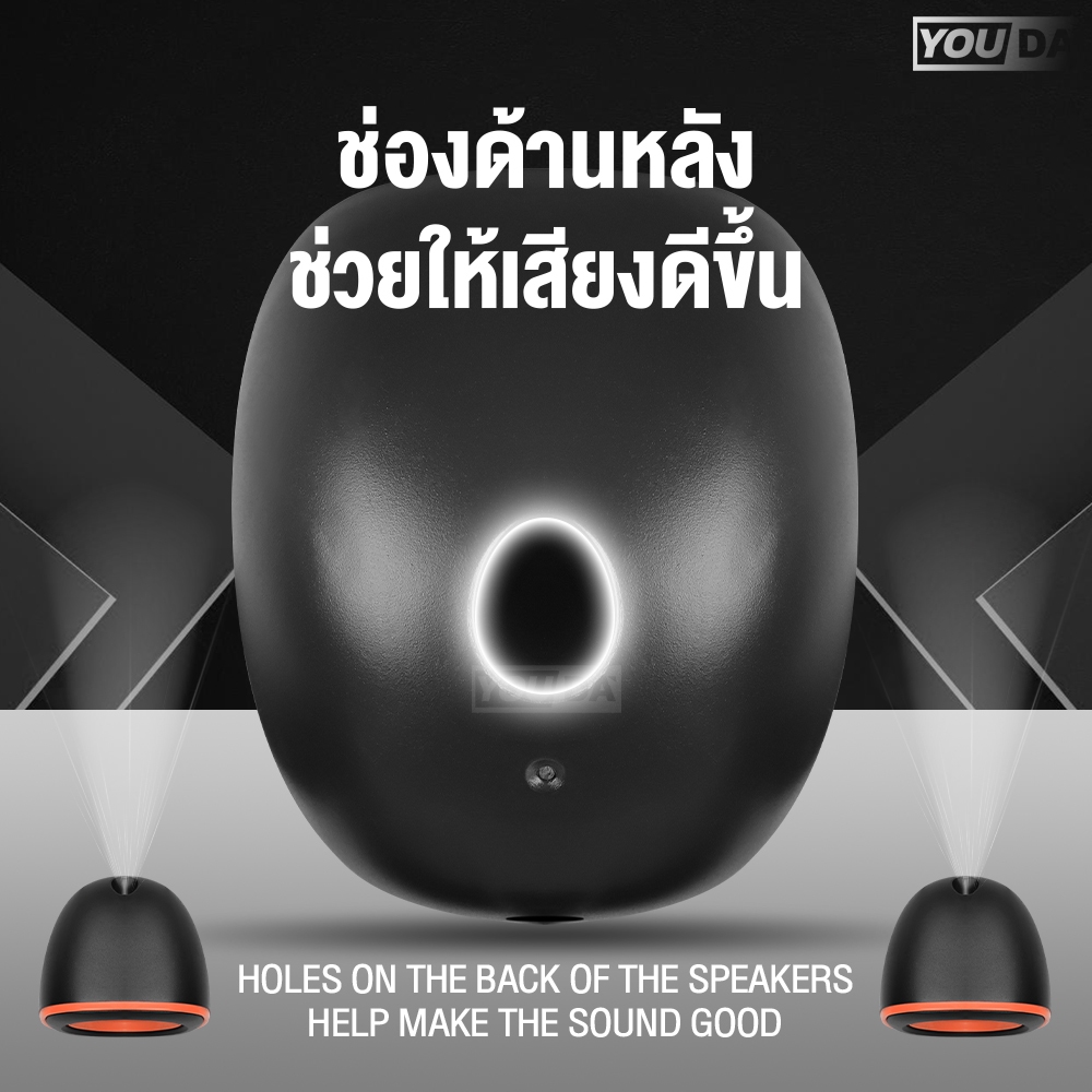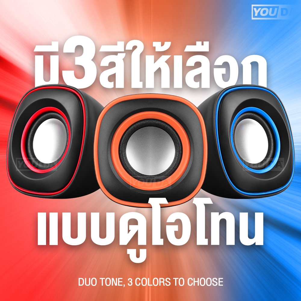 YOUDA ลำโพงคอมพิวเตอร์ USB แบบมีสาย รับประกัน 1ปี เพิ่มลดเสียงในตัว กันน้ำ D-015 ชุดลำโพง2.0 ลำโพงตั้งโต๊ะ ลำโพง USB