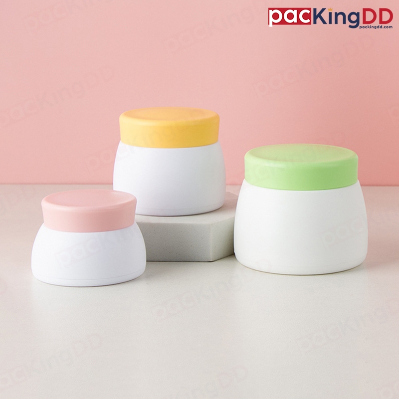 (แพ็ค 10 ชิ้น) กระปุกครีม พลาสติก สีขาว ขนาด 15/30/50 กรัม #P409 ฝาสีเขียว เหลือง ชมพู ตลับครีม กระปุกเปล่า PackingDD