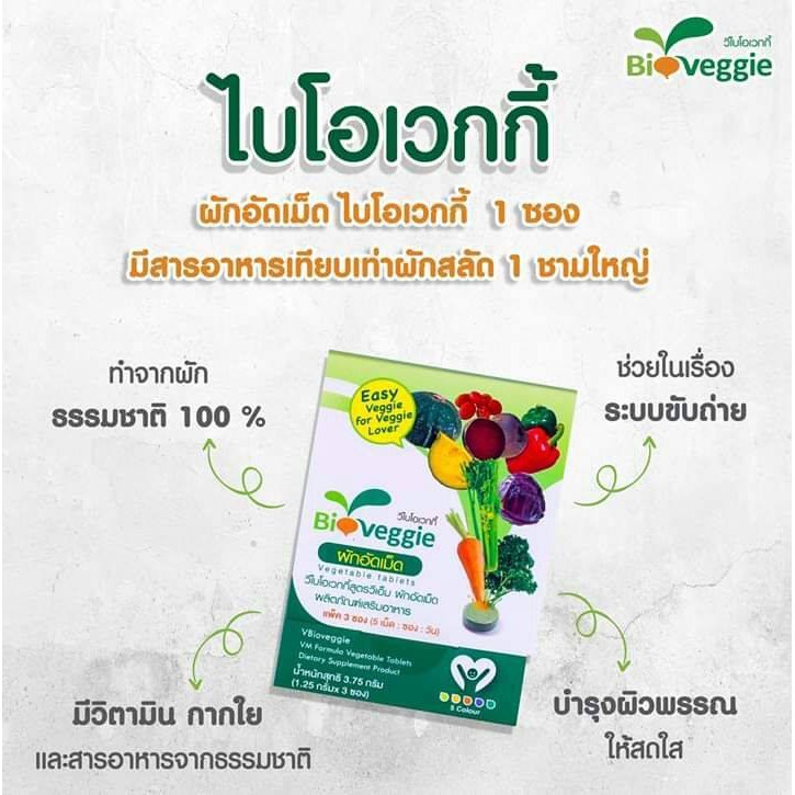 ผักเม็ด bioveggie ผักอัดเม็ดไบโอเวกกี้ ผัก5สี 12 ชนิด (30 ซอง) แถมฟรี 3 ซอง ล็อตใหม่สุด
