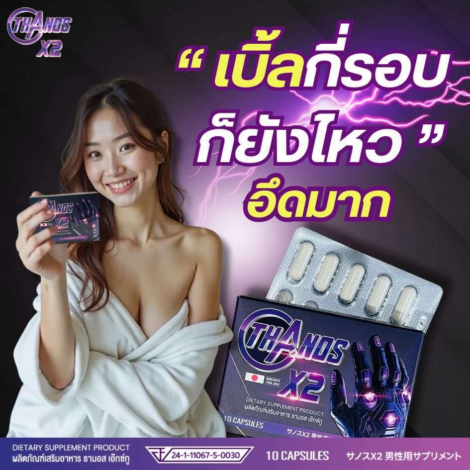 อึดทน แข็งนาน ตั้งแต่เม็ดแรก THANOS X2 ธานอส เอ๊กซ์ทู อาหารเสริมผู้ชายของแท้มีอย. เก็บโค้ดลดเพิ่มเลย