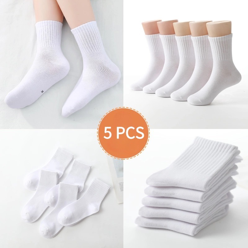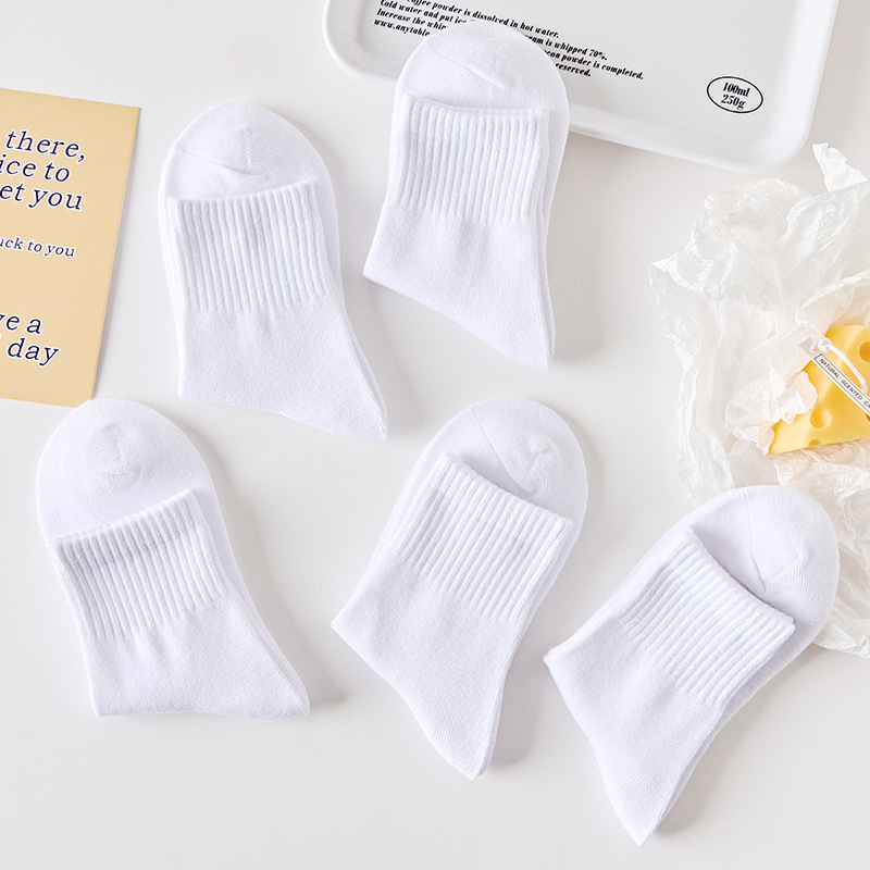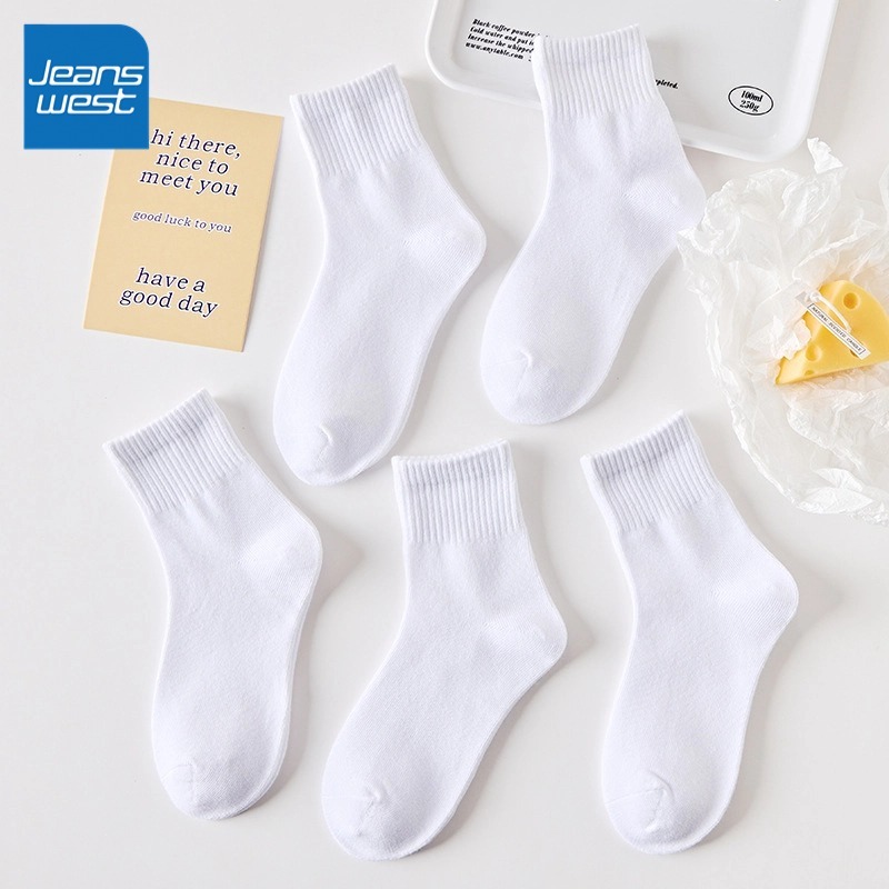 Jeanswest ถุงเท้าสีขาวผู้ชายและผู้หญิงผ้าฝ้ายเรียบง่าย อิน สีทึบกีฬาถุงเท้ากลางลูกวัว