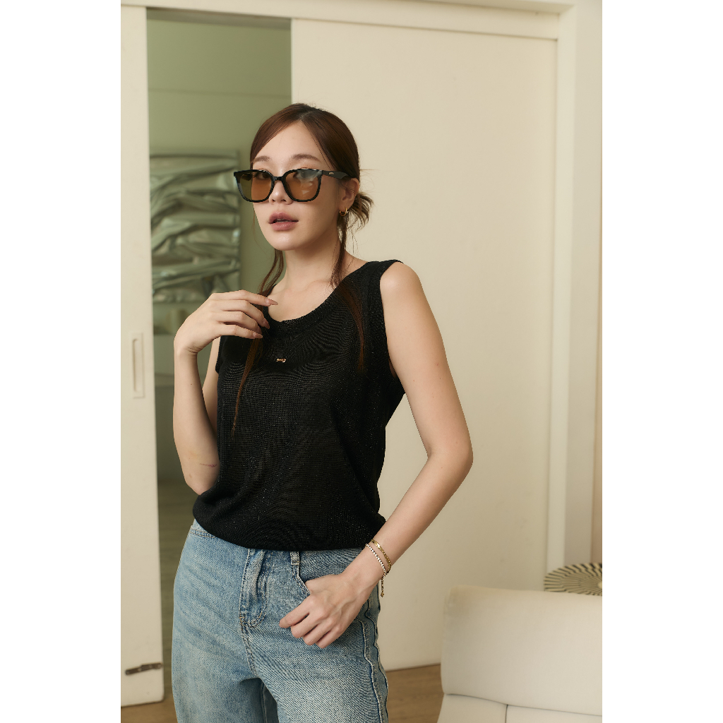 [Bonnie Top] ร้อนนี้ต้องมี ผ้าน่ารักมากมีความวิ้งของกลิตเตอร์ ตกแต่งด้วยอะไหล่โลโก้ เป็นความเบสิคที่หยิบใส่ได้บ่อยแน่นอน