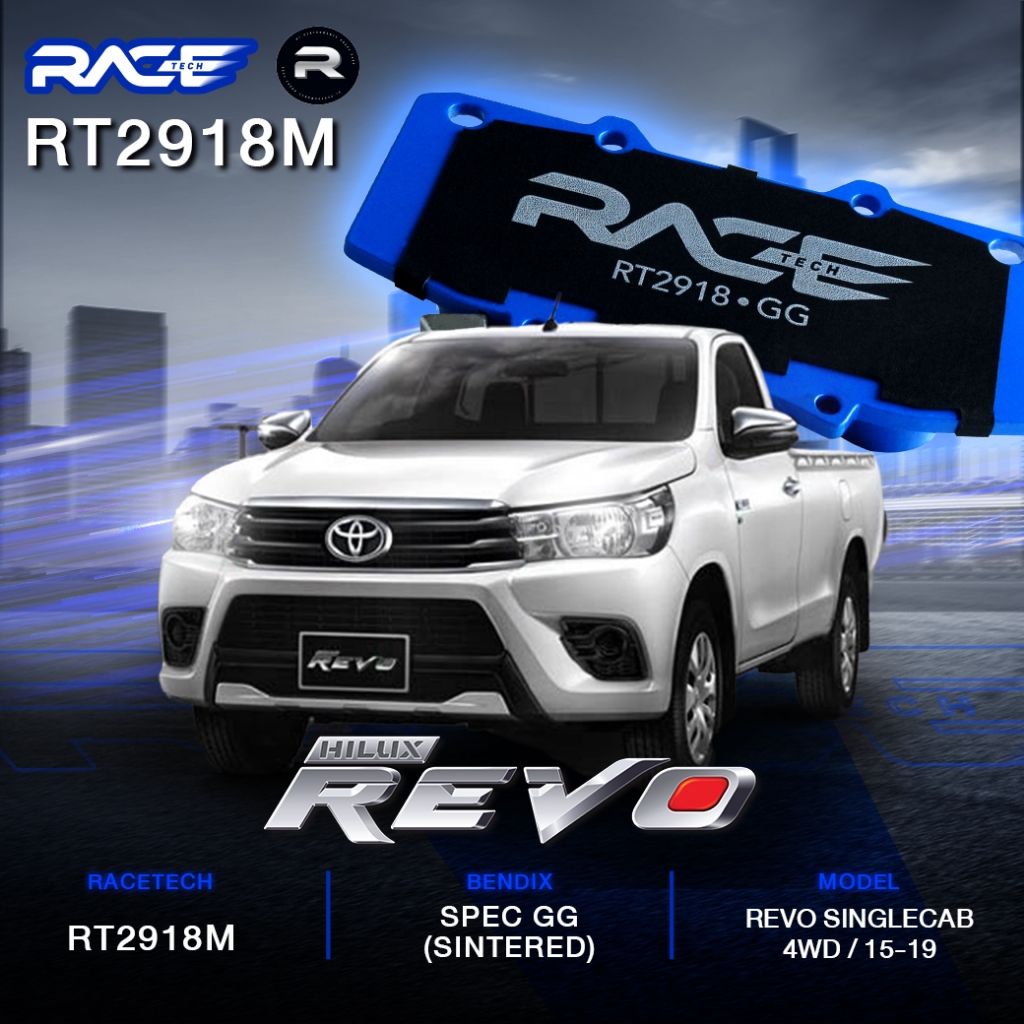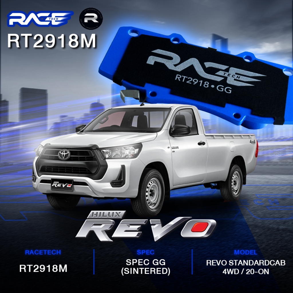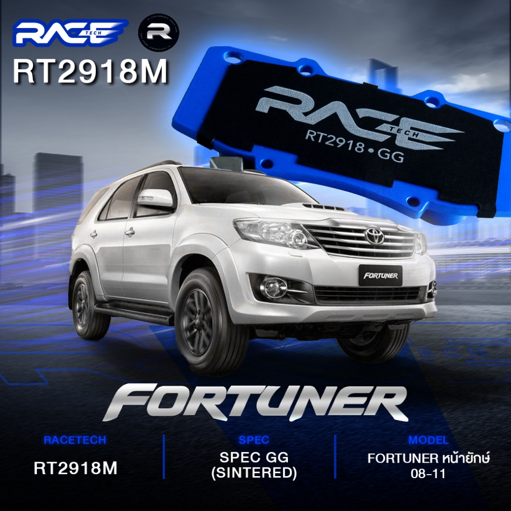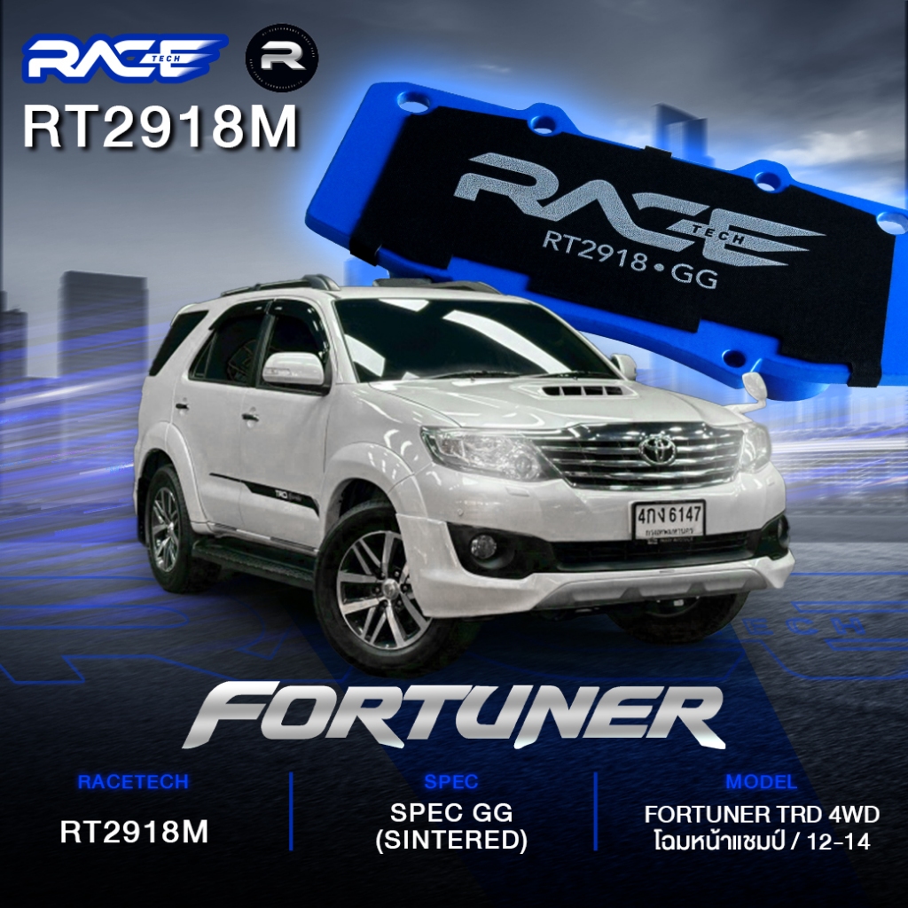 ผ้าเบรคหน้า RACETECH TOYOTA FURTUNER CHAMP/ TRD 12-15 - VIGO 11-15 REVO - TRD VIGO REVO 15- ON 4WD - RT2918M