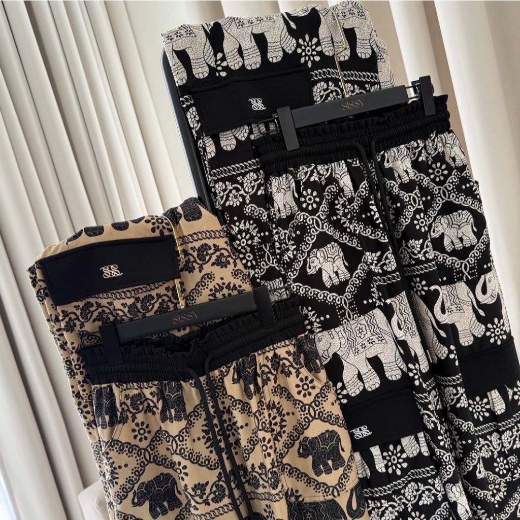 Sissy Store (T8592): กางเกงช้างกระบอกใหญ่คาร์โก้ (S-M) ผ้าอยู่ทรง สวมใส่สบาย แต่งขอบเอวทูโทน