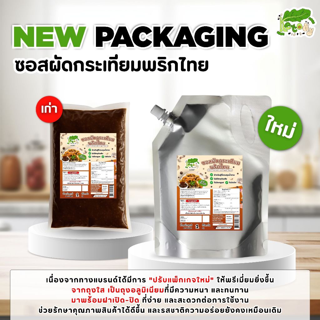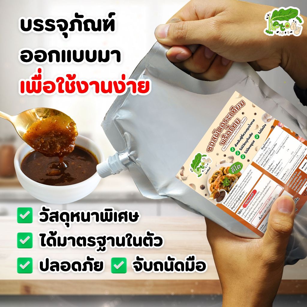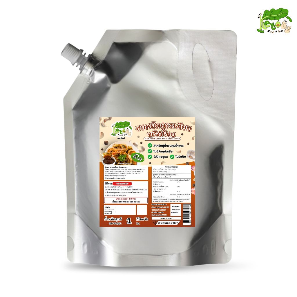 ซอสผัดกระเทียมพริกไทย สูตรคีโต 1 kg Stir-fried garlic and pepper sauce