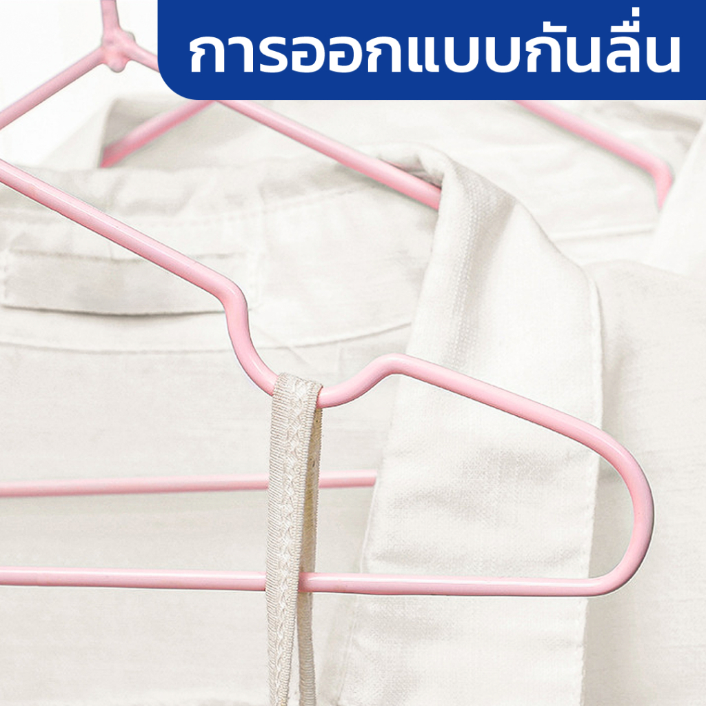 HOPTECH ไม้แขวนเสื้อ ไม้แขวน เคลือบซิลิโคน กันผ้าลื่น สีพาสเทล 1 ชุด/10ชิ้น