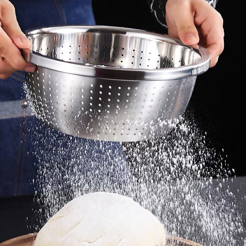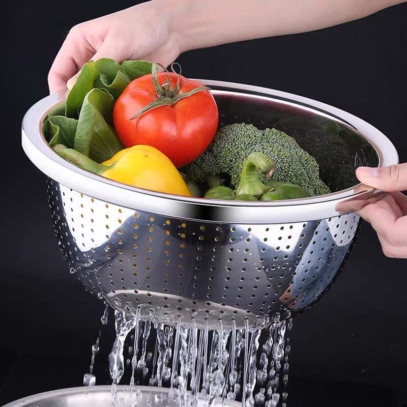 ตะแกรงล้างผัก กระลังมังล้างผักมีรู กะละมังสแตนเลส ตะแกรงล้างผัก มีหลายขนาดให้เลือก (22-40ซม)