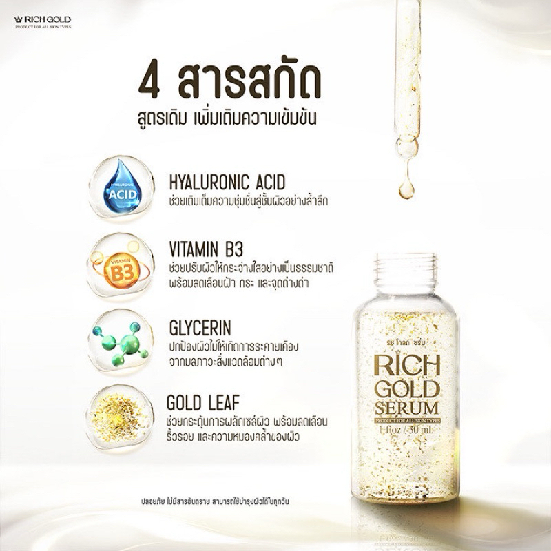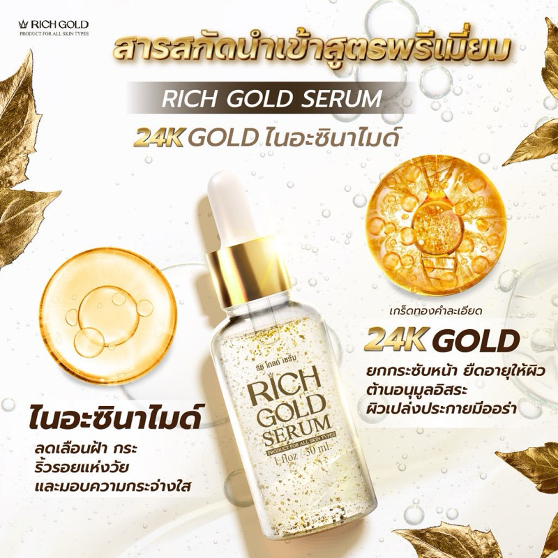 Rich gold serum 24k ริช โกลด์ เซรั่ม บำรุงผิว ช่วยริ้วรอย ฝ้า กระ จุดหมองคล้ำ anti wrinkle freckle face 30ml