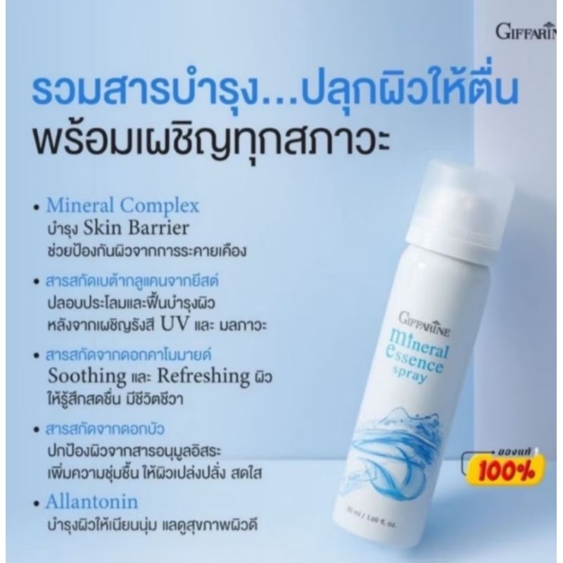 สเปรย์น้ำแร่ กิฟฟารีนมิเนอรัล เอสเซ้นส์ สเปรย์ เพิ่มความชุ่มชื้น ให้ผิวหน้า ฉ่ำวาว