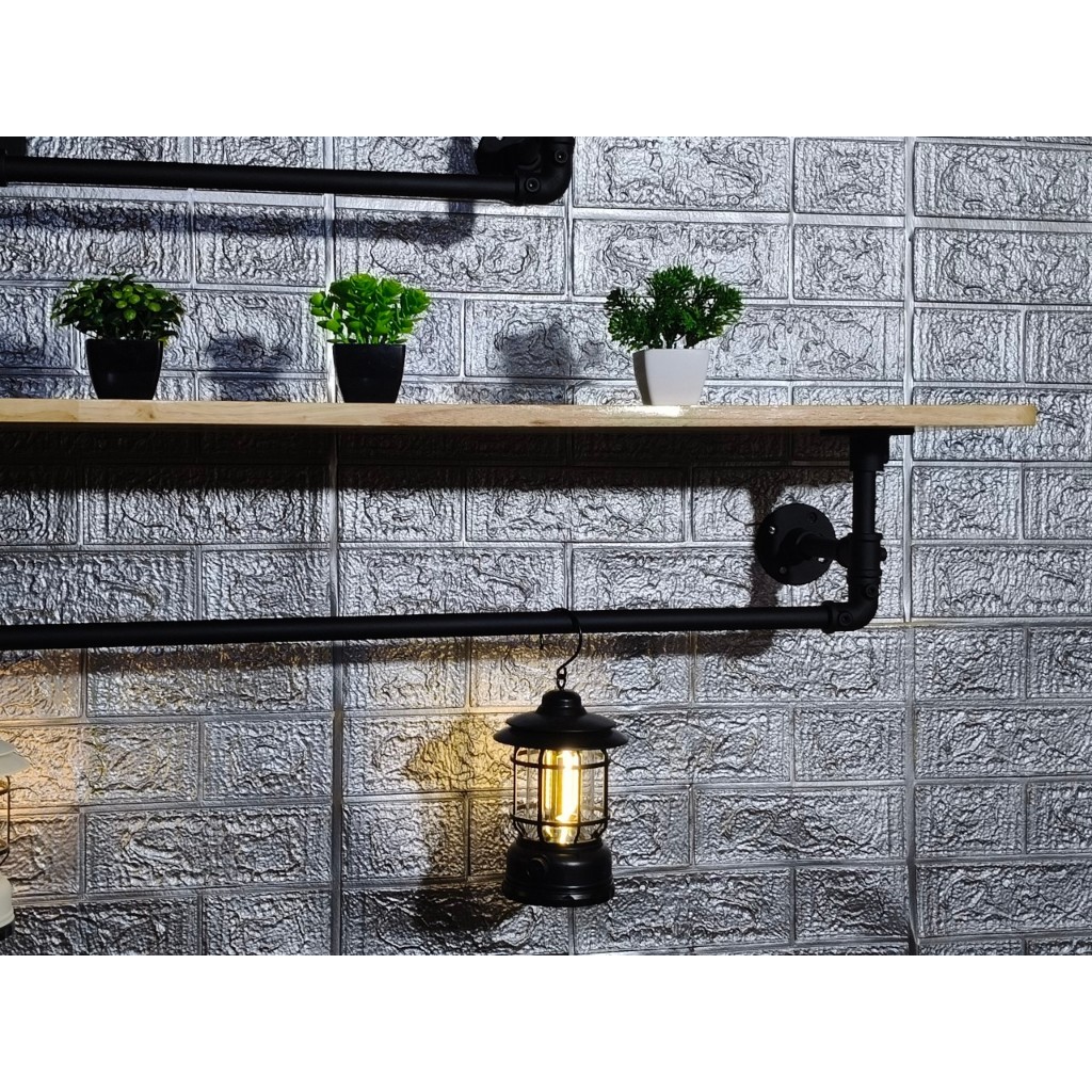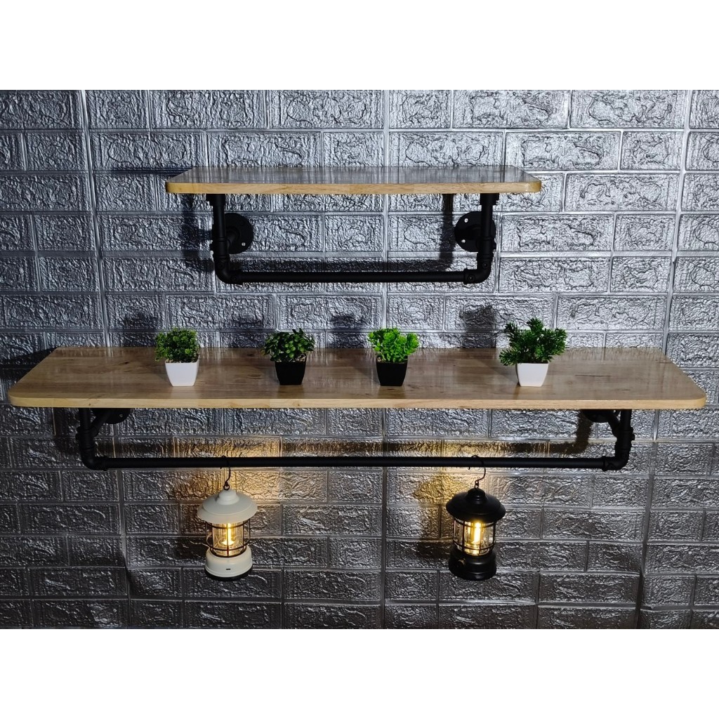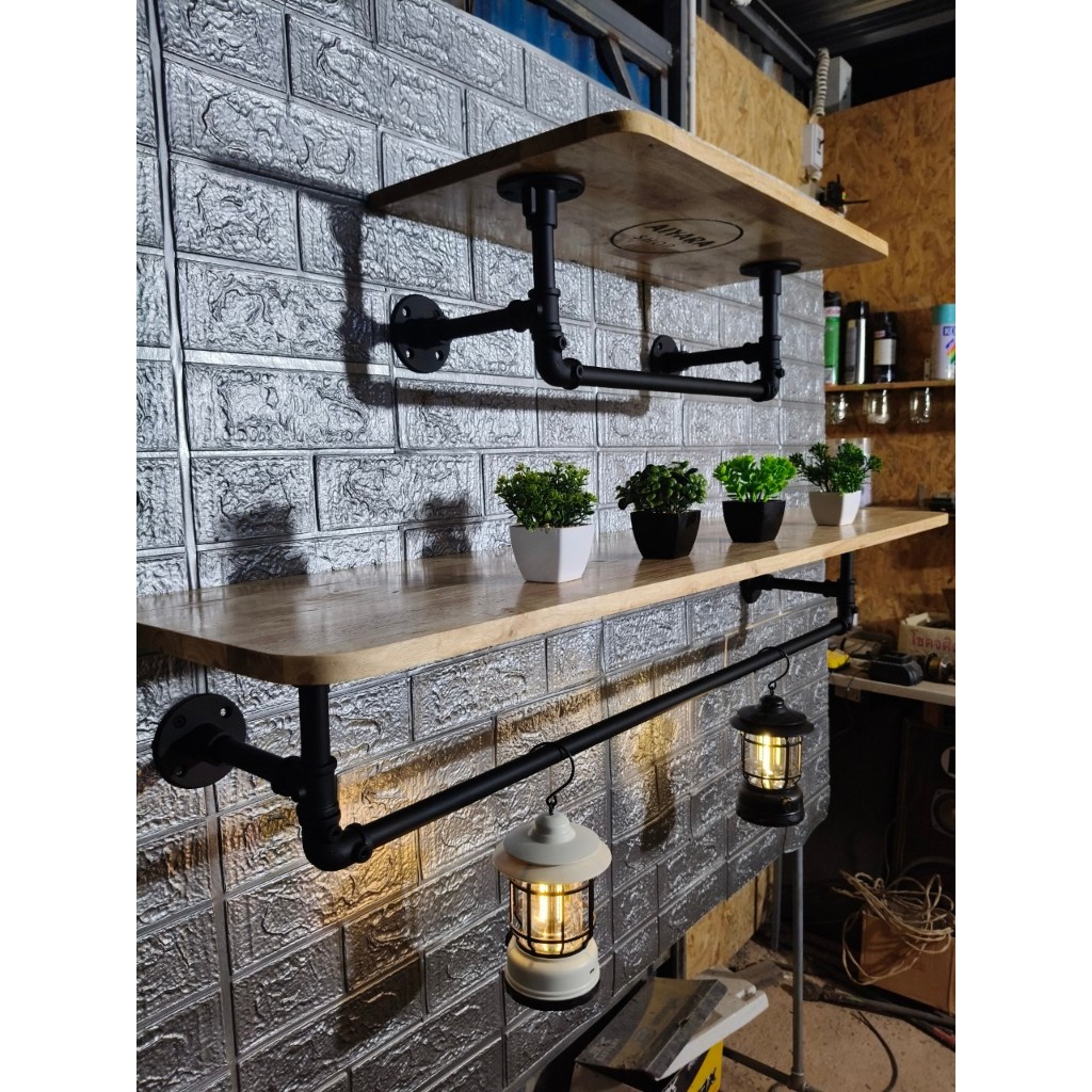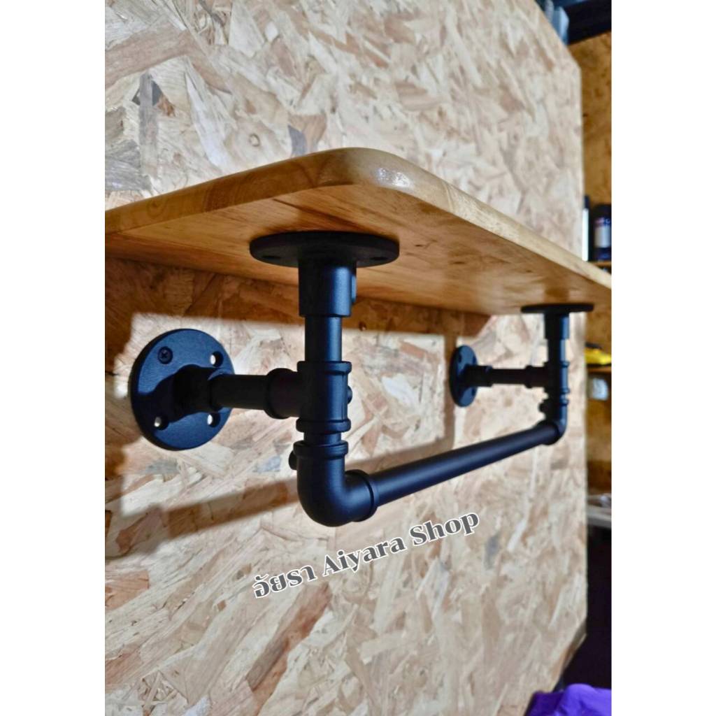 ชั้นวางของติดผนังพร้อมที่แขวนผ้า สไตล์ลอฟท์