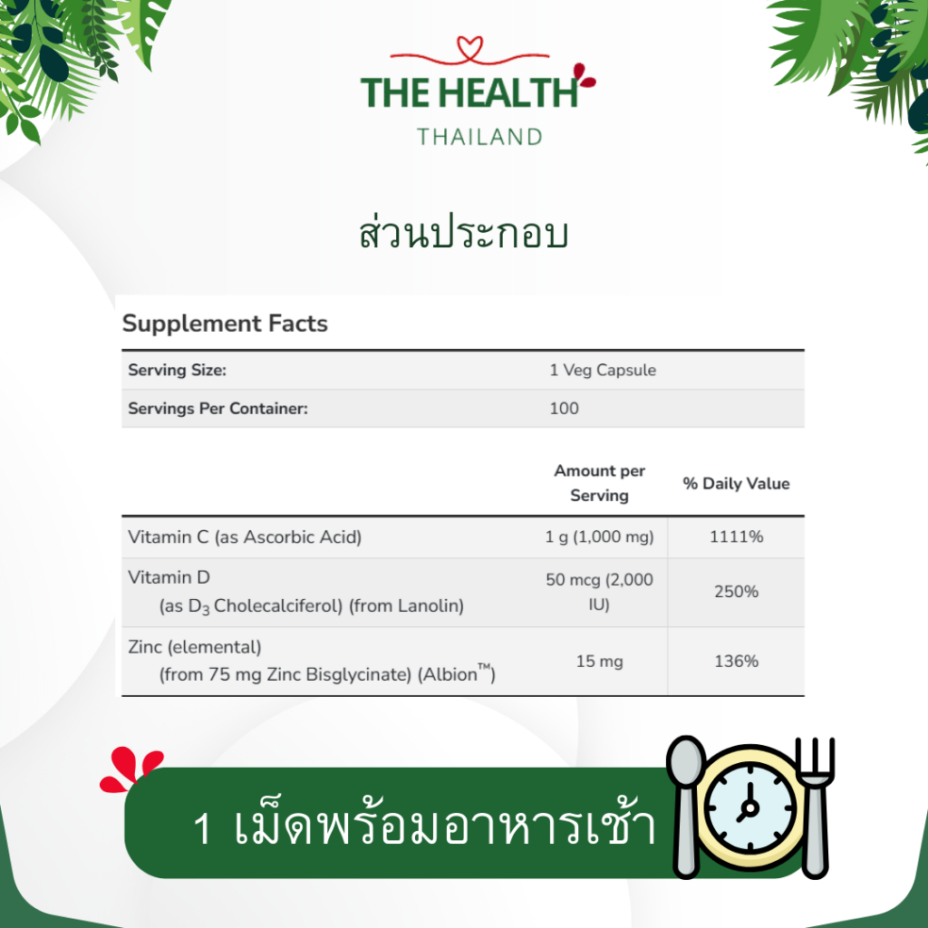 Now วิตามินซี ซิงค์ และวิตามินดี 3 - Vitamin C 1000mg ผสม Zinc และ วิตามิน D3 ในขวดเดียว ขนาด 100 เม็ด