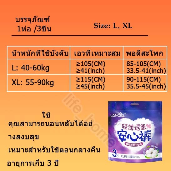 Lancool Panty Pads แผ่นป้องกันการรั่วซึม ขนาด L และ XL แผ่นซับในข้ามคืน แพ็ค 3 ชิ้น