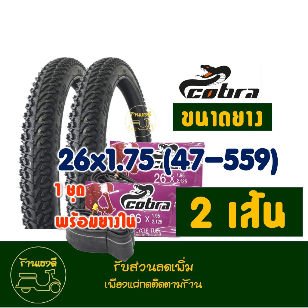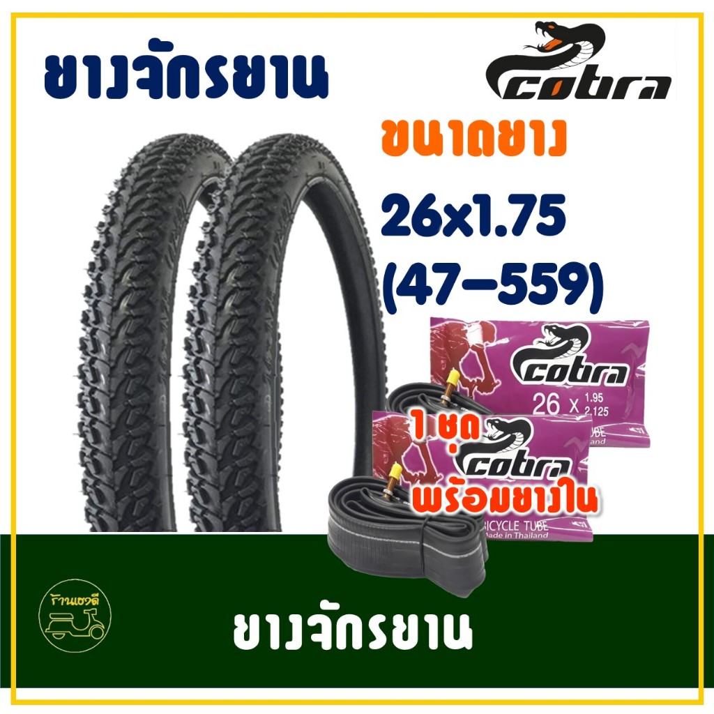 ยางจักรยาน COBRA วงล้อ 26 นิ้ว ขนาด 26x1.75 (47-559) ยางนอกพร้อมยางในอย่างละ 2 เส้น