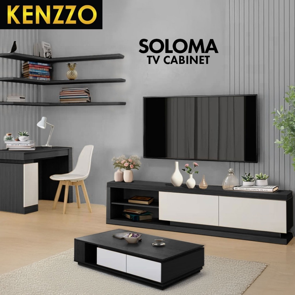 ชั้นวางทีวี ตู้วางทีวี ชั้นวางทีวีมินิมอล ดีไซน์สวย สีทูโทนเท่ๆ Soloma TV Cabinet/ โต๊ะทำงาน โต๊ะเขียนหนังสือ Study Tabl