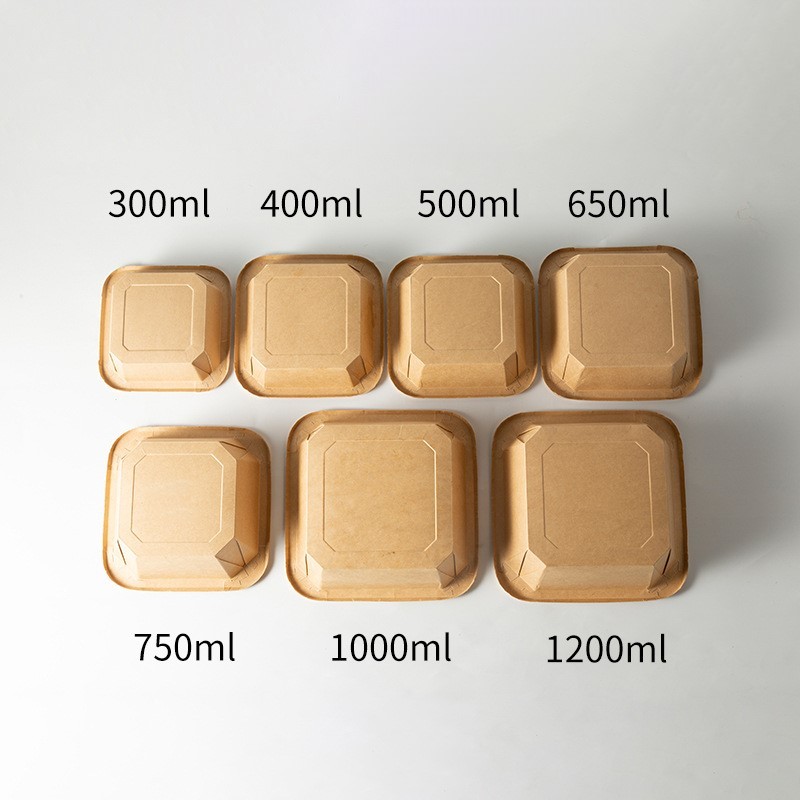 กล่องกระดาษคราฟท์ใส่อาหารทรงสี่เหลี่ยมพร้อมฝา Japanese Style แพคละ 10 ชุด ดีไซน์ฝาวางซ้อนกันได้