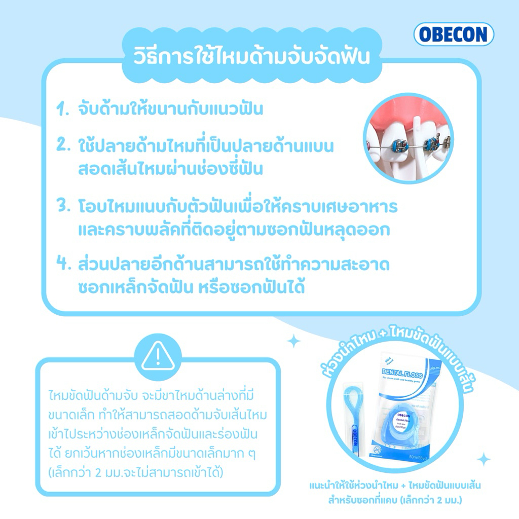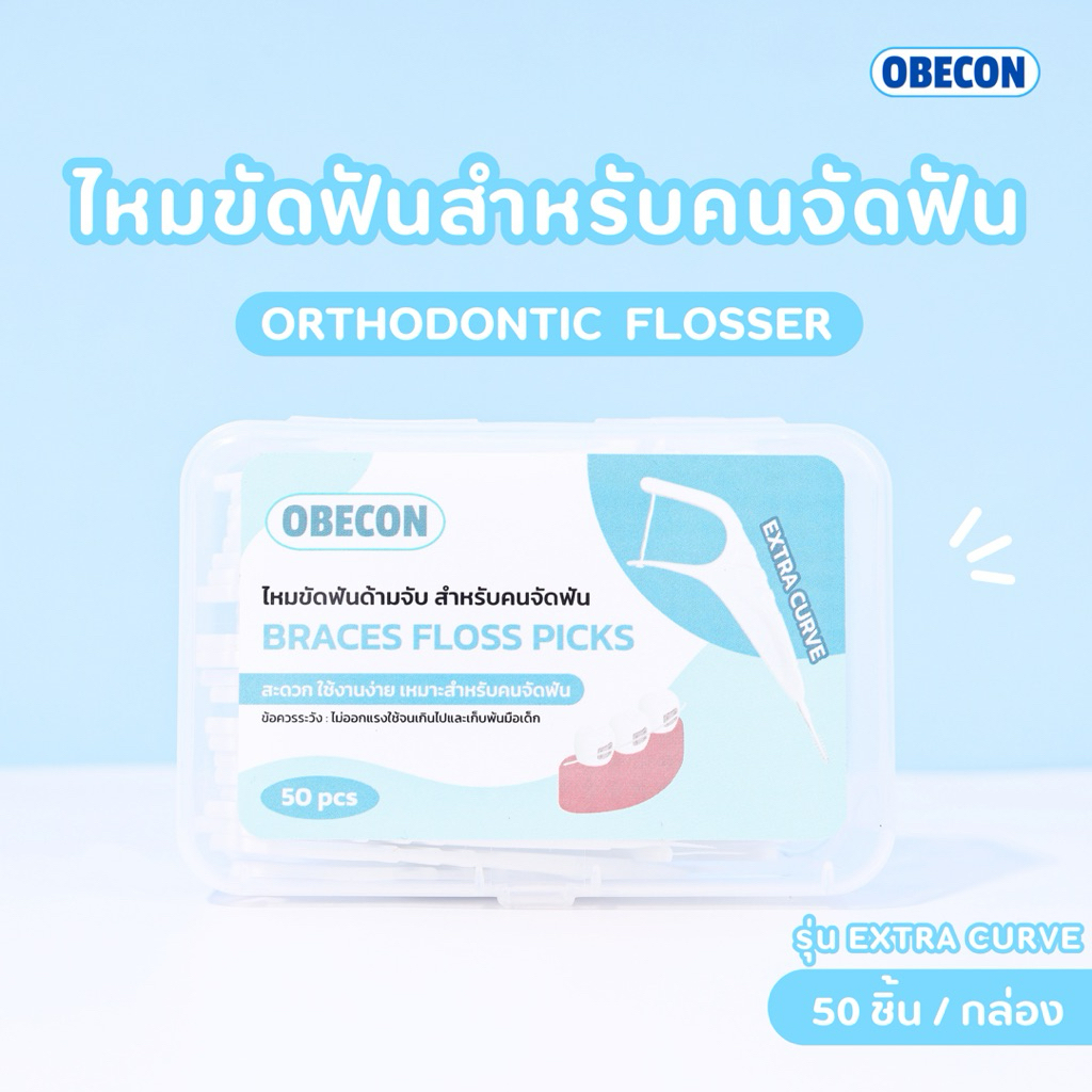 OBECON ไหมขัดฟันสำหรับคนจัดฟัน แบบมีด้ามจับ Orthodontic Flosser รุ่น Extra Curve 1 กล่อง 50 ชิ้น