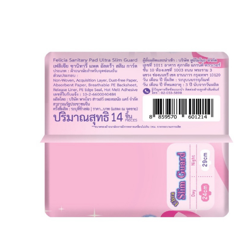 FELICIA - Sanitary Napkin Pad Ultra Slim Guard 24 cm 14 pcs/29cm. 12 pcs เฟลิเซียผ้าอนามัยแบบแผ่นอัลตร้าสลิมการ์ด