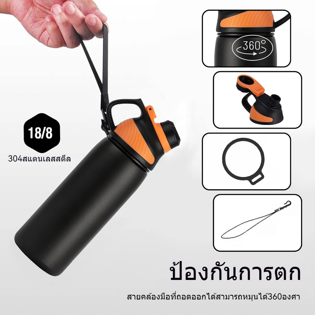 FJbottle ขวดน้ำเก็บร้อน–เย็น 600/800/1000/1500ml สำหรับนักเรียน & กีฬา พร้อมแปรงทำความสะอาด