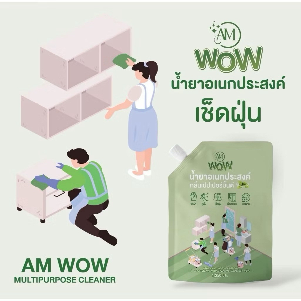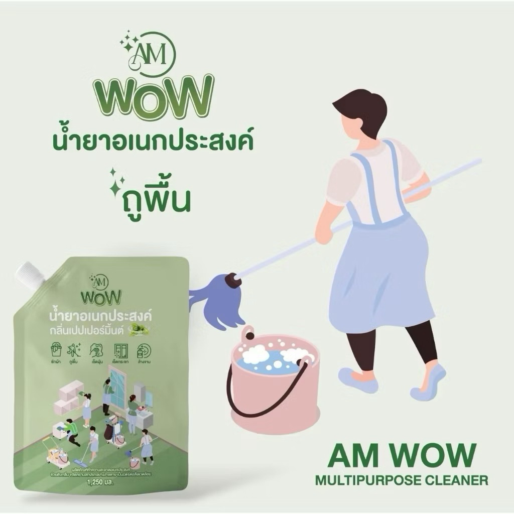 🔥แพคเกจใหม่🔥น้ำยา AM ว้าว ขจัดคราบอเนกประสงค์ กลิ่นเปปเปอร์มิ้นต์ และกลิ่นยูคาลิปตัส