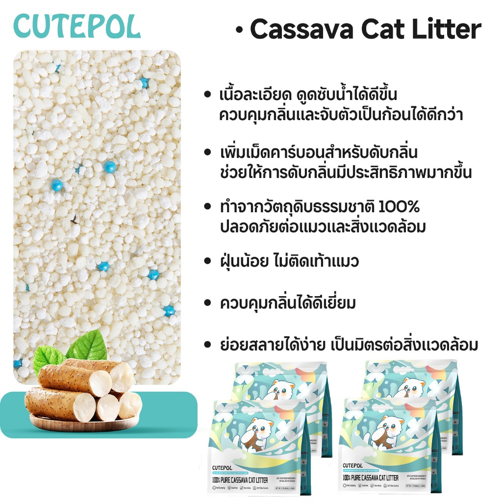 Cutepol 28L ทรายแมว ทำจากมันสำปะหลังธรรมชาติ ดับกลิ่นดีเยี่ยม16L 8L 4L ทรายแมวส่งฟรี
