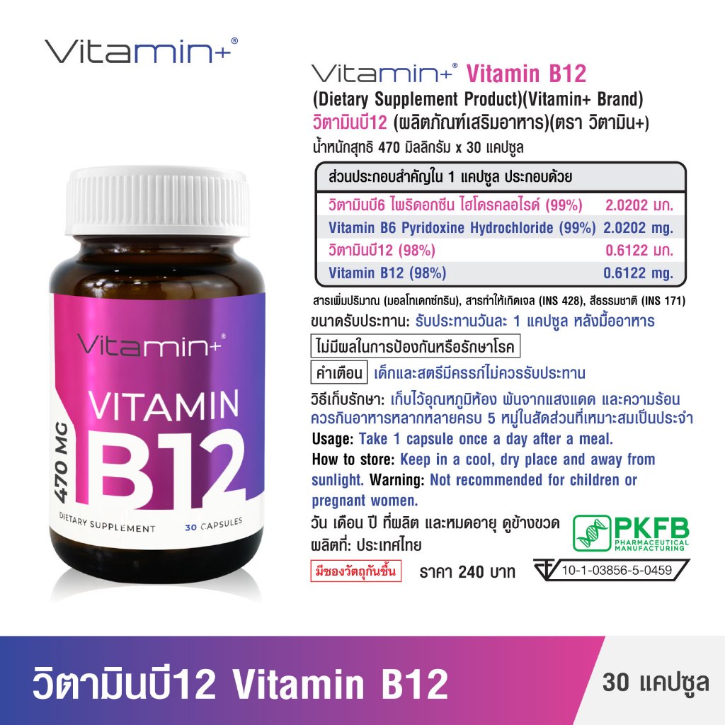 [ซื้อ 1 แถม 1] วิตามินบี12 วิตามินพลัส Vitamin B12 Vitamin+ วิตามินบี Vitamin B บี12 วิตามินบี 12 วิตามินบี6 Vitamin B6