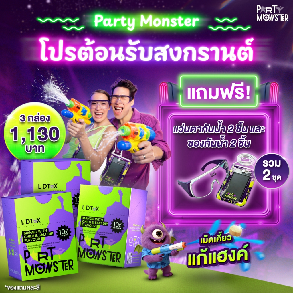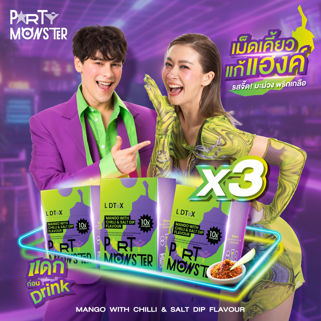 [3 กล่อง] Party Monster ปาร์ตี้ มอนสเตอร์ เม็ดเคี้ยวแก้แฮงค์ [ 1 กล่อง = 10 เม็ด ]