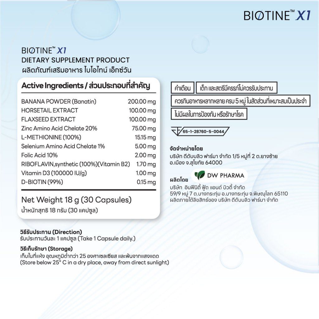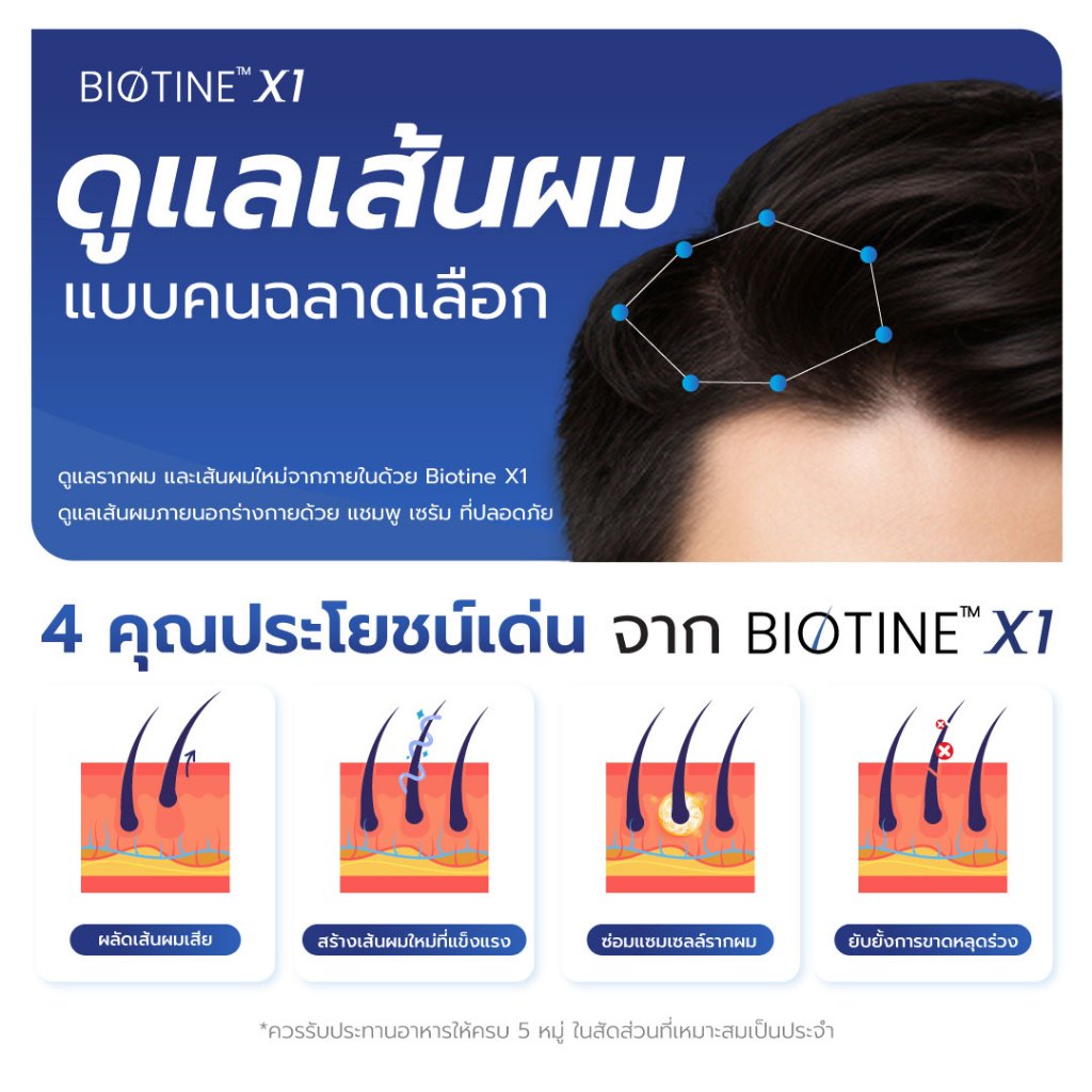 BIOTINE X1 (ไบโอไทน์ เอ็กวัน) สำหรับผู้ชาย ร่วงยาก กระตุ้นงอกใหม่ ผมแข็งแรง แก้ปัญหาบาง เถิก ล้าน ขนาด 60 แคปซูล