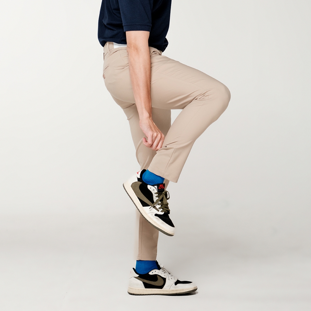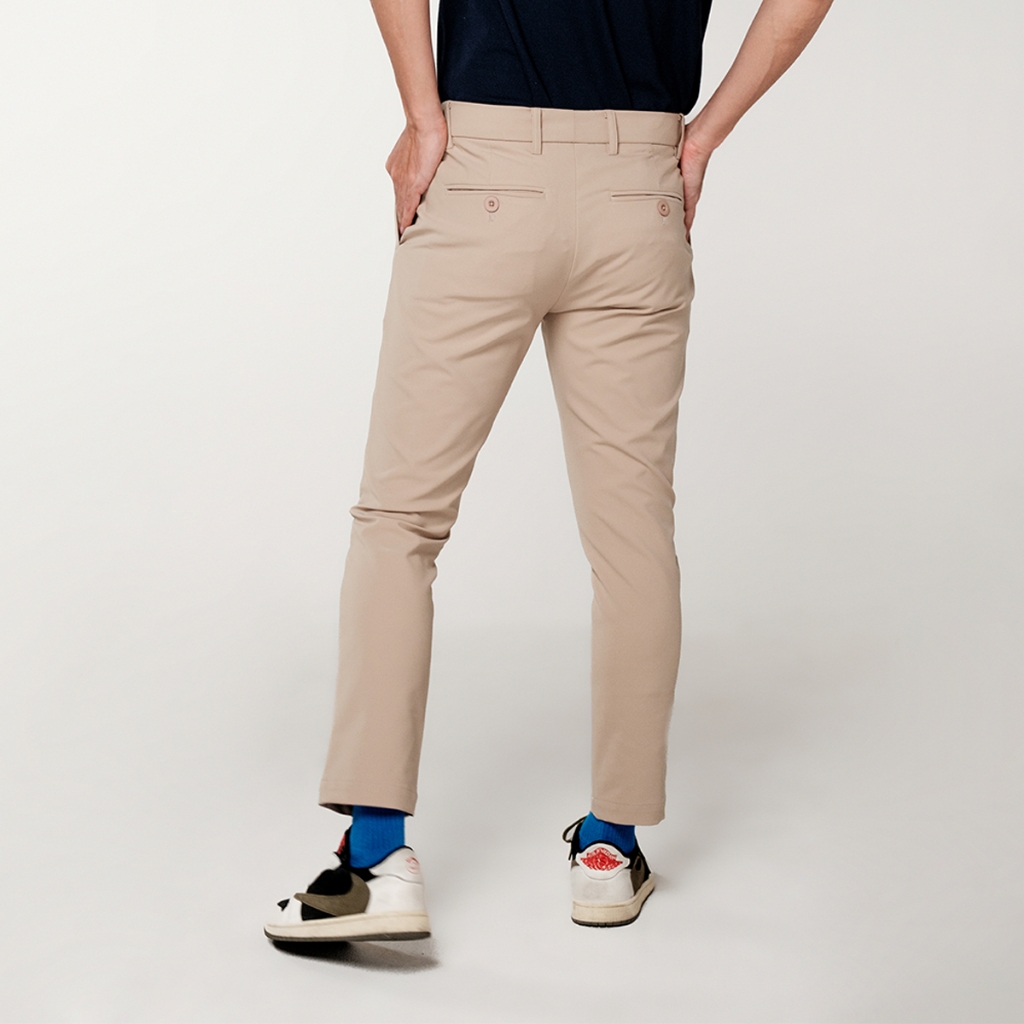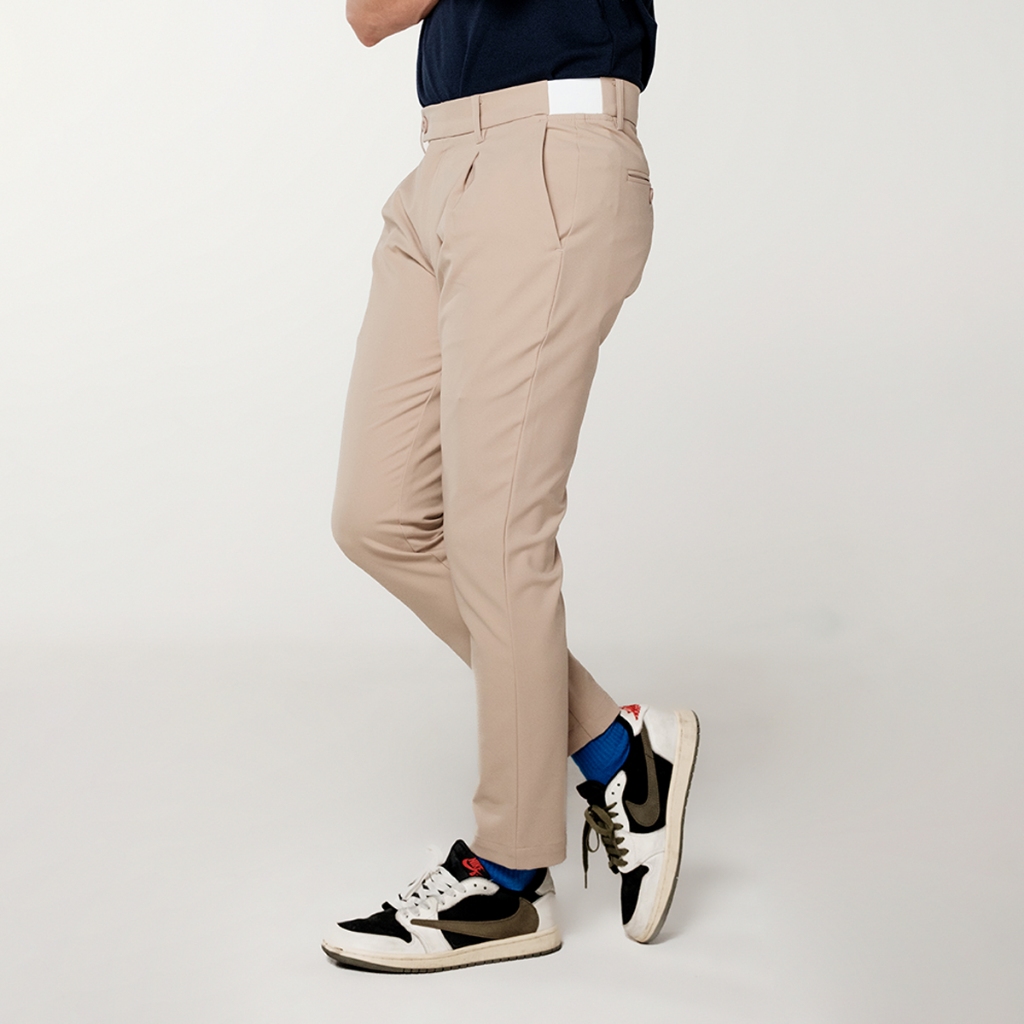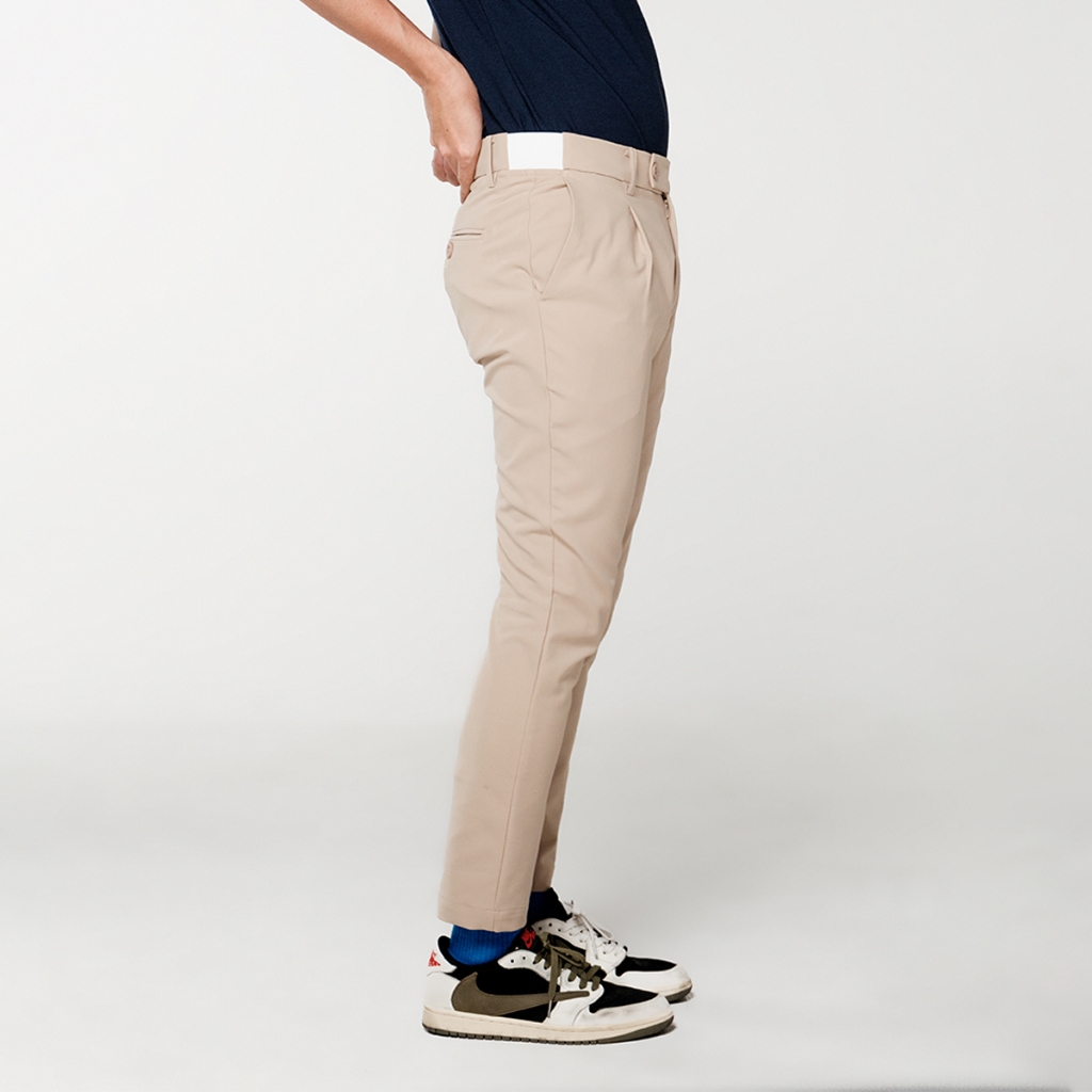 era-won กางเกง รุ่น GOLF FABRIC (065 V.8) ทรงกระบอกเล็ก ขาเต่อ เอวยางยืด สี Soft Beige