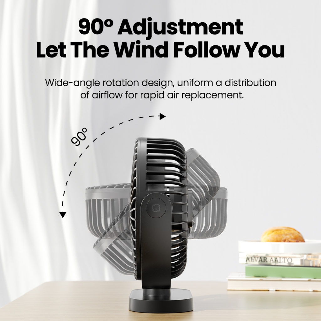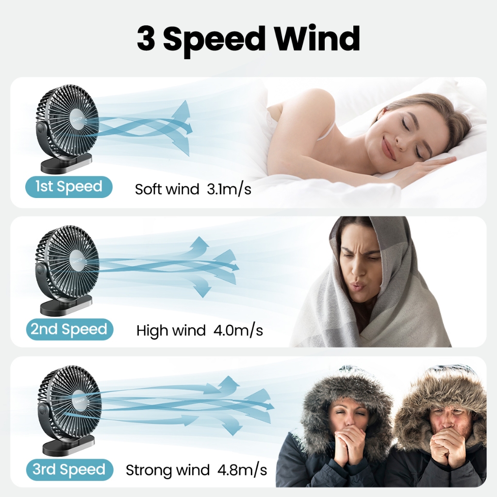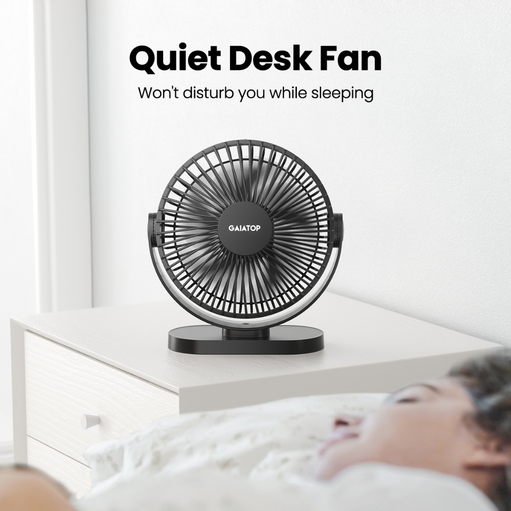GAIATOP พัดลมตั้งโต๊ะ USB พัดลมพกพาทรงพลัง 3 สปีด พัดลมมินิระบายความร้อนเงียบ ขนาด 5.5 นิ้ว พัดลมตั้งโต๊ะขนาดเล็กหมุนได้ 90° พร้อมสายไฟยาว 5 ฟุต พัดลมส่วนตัวสำหรับเดสก์ท็อป โฮมออฟฟิศ การเดินทาง