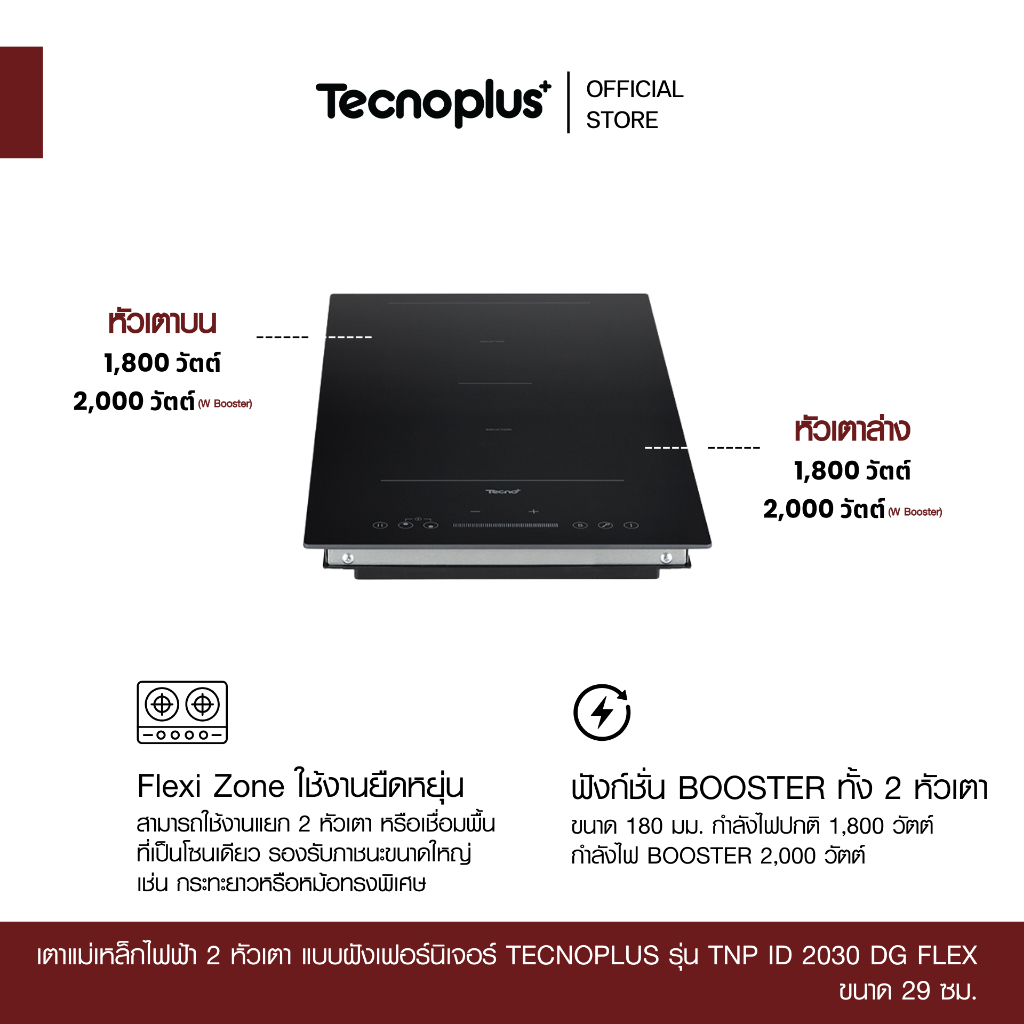 เตาแม่เหล็กไฟฟ้า 2 หัวเตา แบบฝังเฟอร์นิเจอร์ Tecnoplus รุ่น TNP ID 2030 DG FLEX
