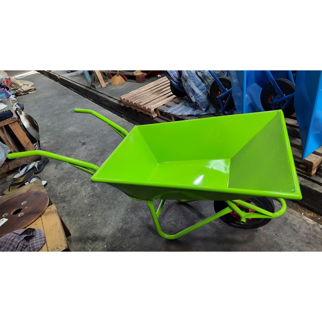 รถเข็น รถเข็นปูน ล้อเดี่ยว สีเขียว และ สีฟ้า เหล็กหนา 0.9 มิล ล้อแม็คเหล็ก แข็งแรงทนทาน ราคาถูกมาก