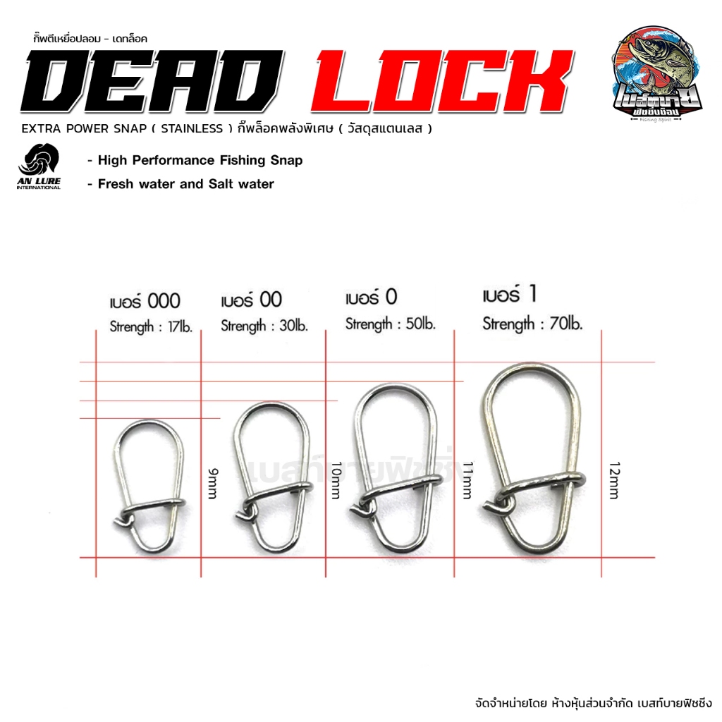 กิ๊บตีเหยื่อปลอม กิ๊บล็อค สเน็ป Dead Lock Extra Power Snap (Stainless) ยี่ห้อ ANLURE