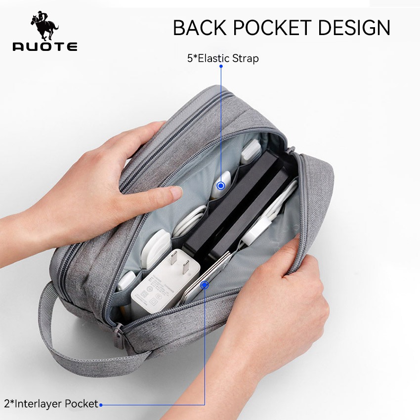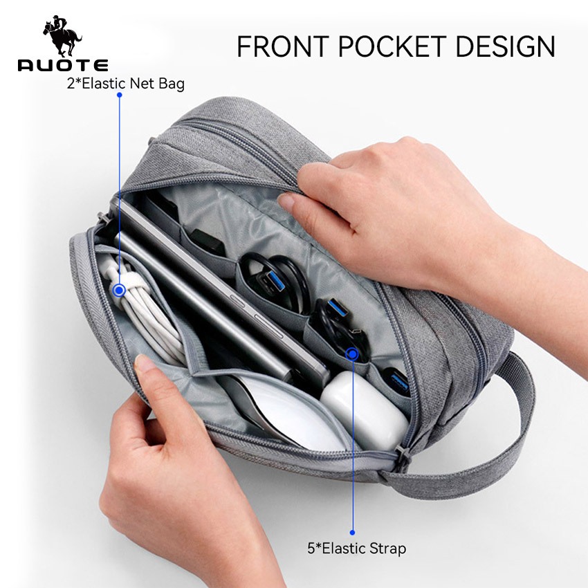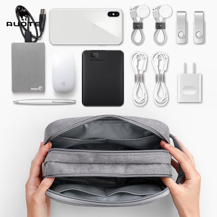 AUOTE Digital Storage Bag Multifunctional Travel Organizer Double Layer ขนาดใหญ่ความจุอิเล็กทรอนิกส์ Gadget กระเป๋าสาย USB กระเป๋าขนาดใหญ่กระเป๋าอุปกรณ์เสริม U Disk Har