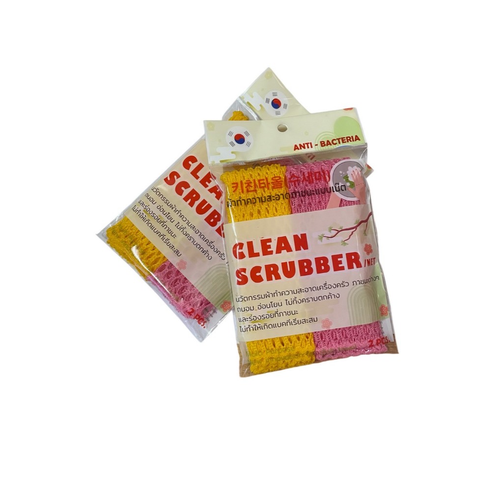 [ เกาหลี ] ตาข่ายล้างจาน 2ชิ้น ตาข่ายทำความสะอาดภาชนะ ใยตาข่าย สำหรับ ล้างภาชนะและเครื่องครัว วัตถุดิบเป็นผ้า แบบเน็ต