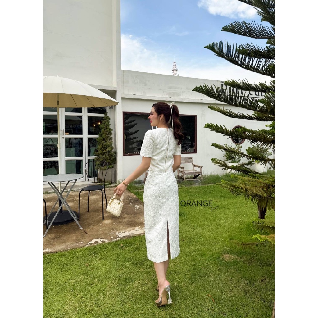 OR21891 ชุดขาว ชุดดำ ผ้าลูกไม้อัดกาว เสื้อแต่งกระดุมคริสตัล ซิปหลัง กระโปรงทรงสอบผ่าหลัง งานป้าย ORANGE